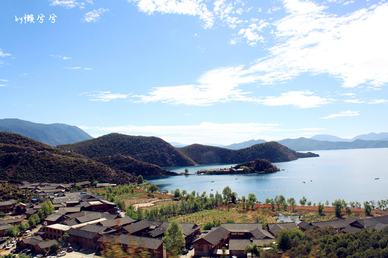 车子终于缓缓的驶入了泸沽湖 景区,虽然之前看过很多泸沽湖 的照片,可是当一切出现在眼前的时候,我震惊了,老天爷很给力,给了我们一个阳光明媚的艳阳天,以至于我们 可以看到这么美这么美的泸沽湖 全景,这湖水由浅而深的蓝色,蓝得清澈,蓝得丰润 ,蓝得迷人,深蓝,浅蓝,淡蓝,湖中还泛着白色的光晕,美的就像一幅画,这样的美景,甚至影响到了后来我去的九寨沟 ,我都觉得没有泸沽湖 这么迷人,在这样的景色面前,世界万物仿佛静止了。