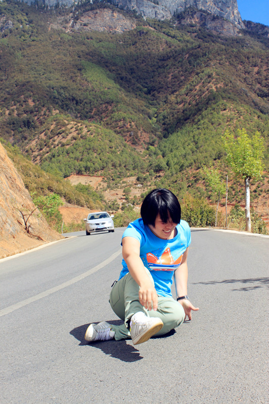 就停车这一功夫,突然想来个公路达人, 蛋蛋一屁股坐下去,我快门还没 按几下,前方就来了车辆,嘟嘟嘟的的喇叭一直按个不停。。
