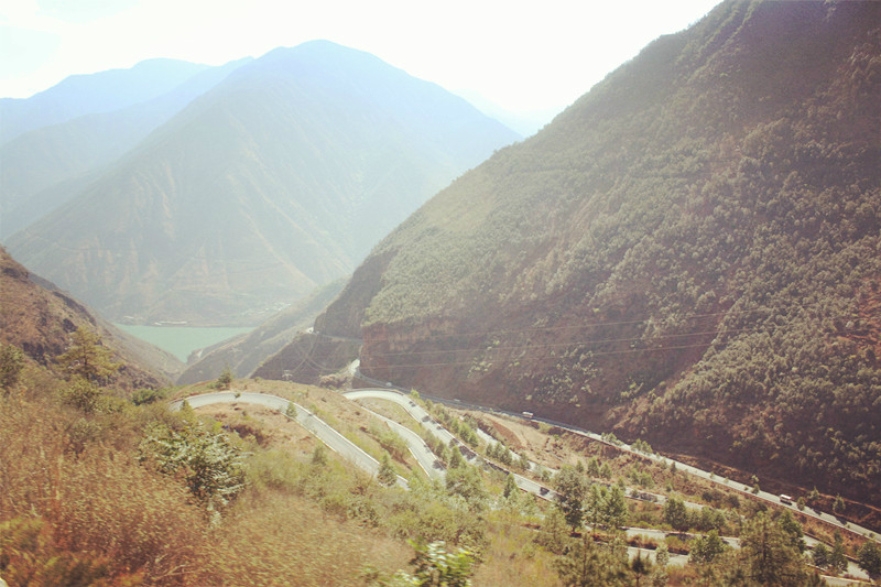 传说中的 丽宁十八弯,从丽江 到泸沽湖 的这一路上绝对是高风险,一路上都是盘山 公路,绝对的考验开车技术,左拐右拐的,感觉到车身像是耍龙一般,甚至到大拐弯都不见司机减速,这一路心惊肉战的,师傅,你可悠着点,我们可是一车的乘客啊.