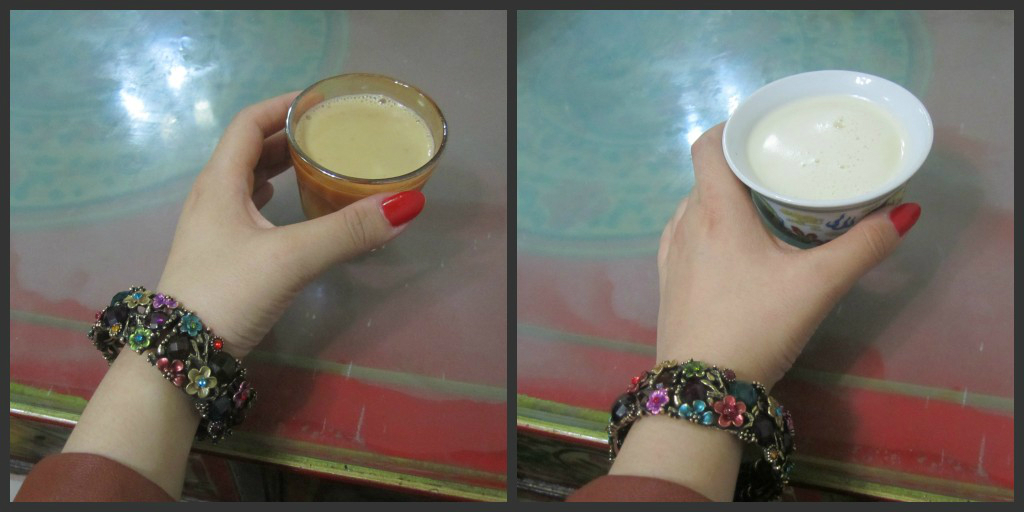 左边是甜茶,我很喜欢;右边是酥油茶,实在接受不了,酥油味和盐味太重了……