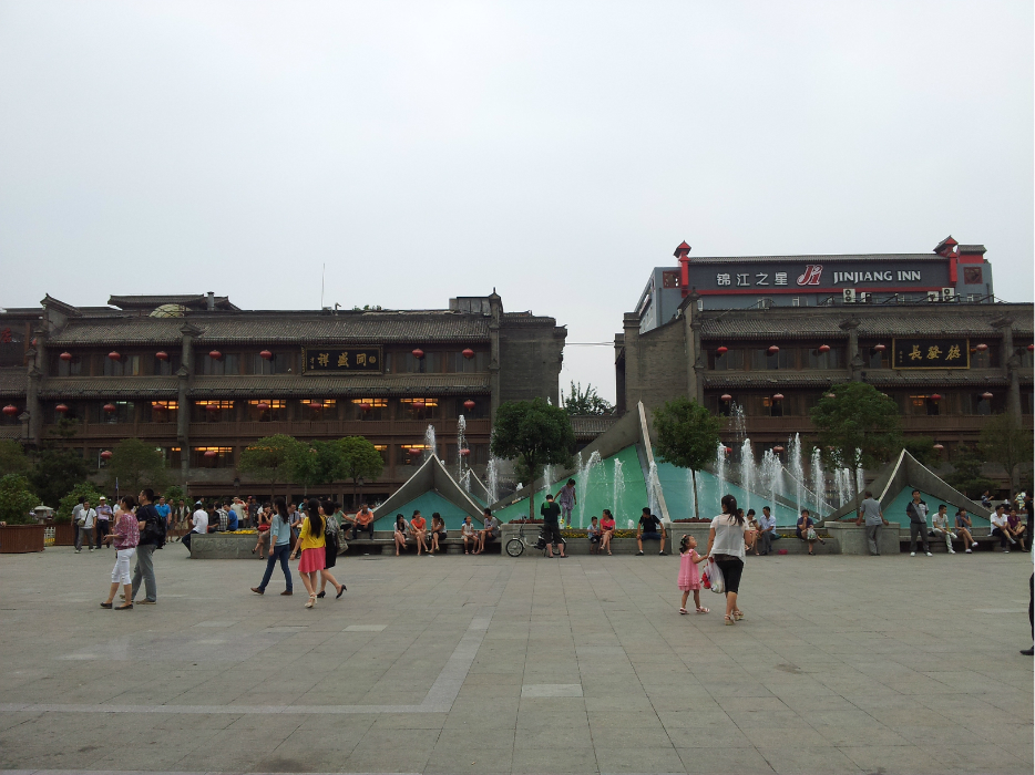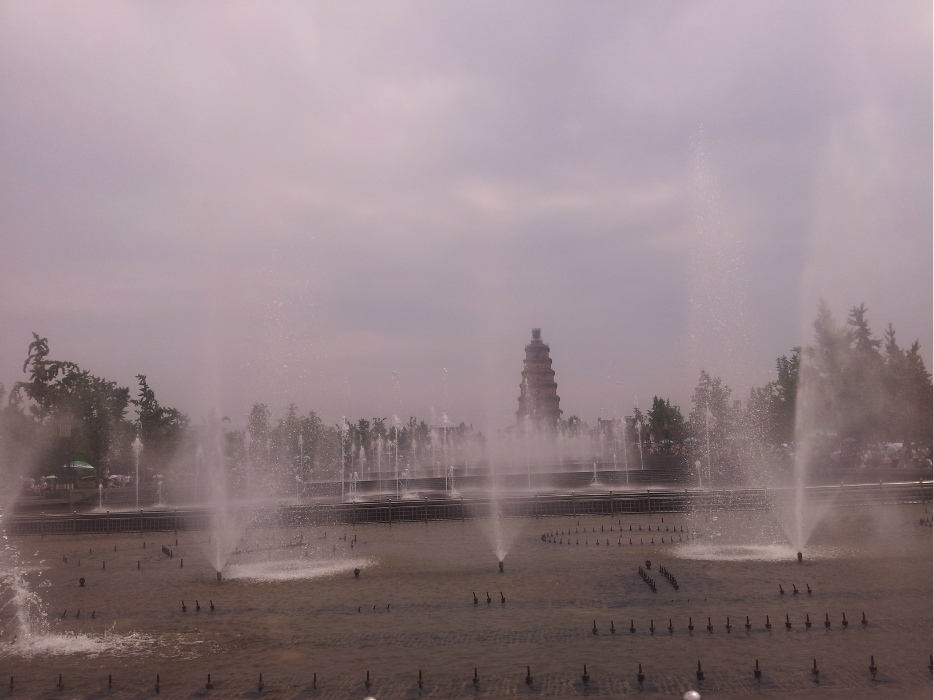 早上一大早起来,就坐车去了陕西 省历史博物馆,排了40分钟的队,终于领到票了。陕西 省历史博物馆是不售门票,凭身份证领票,一证一张,每天的数量也有限,2000张吧,好像是。(Ps:两个小时就逛完了,出来的时候,看到还有人在凭票进门,而且领票处也没人排队了,真心建议,如果平时的话,应该没有那么多的人参观,想去陕西 省历史博物馆参观的,提前看下日期,免得花费过多的时间排队领票)看过之后,就去了大雁塔广场,大雁塔其实是大慈恩寺里的一座塔,我家不信佛,就没有进去,而且真心觉得全国各地的寺院都一样,愚见愚见。。。雁塔广场还是不错的,特别是北广场的那个音乐喷泉,号称是全亚洲 的最大的音乐喷泉广场,我们去的那天,正好赶上音乐喷泉开,点太好了,啦啦啦。