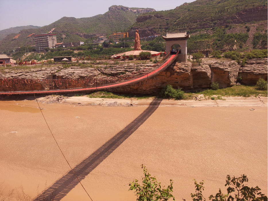 远处的那个桥是山西 和陕西 两省联合修的,一家一半,样式不一。有点意思
