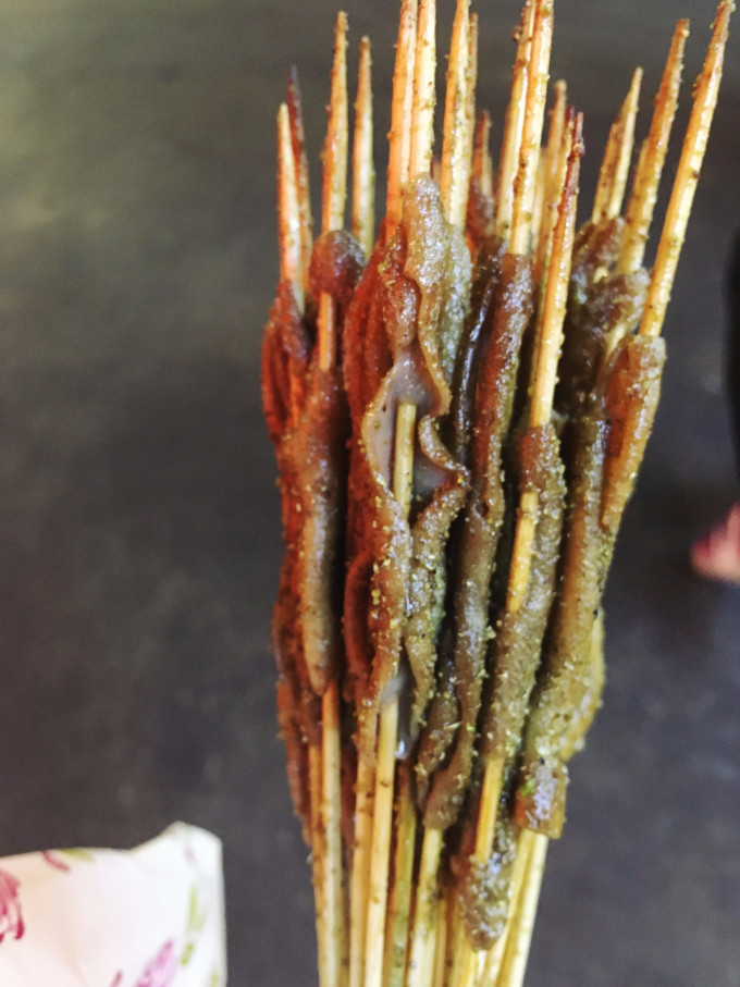 烤鸭肠:有很多家卖烤鸭肠,我们秉承打卡网红店的原则选了最多人排队的那一家(后来想起我简直就是zz)25钱有一大把几十根,刚开始吃还是蛮好吃的,但吃到后面特别腻,而且鸭肠冷了之后有股腥味,吃的我有点想吐,不推介。