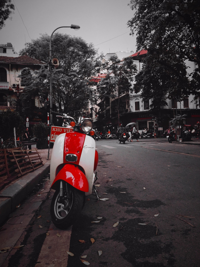 鲜艳的红色小摩托,是街角的一抹为数不多的亮色