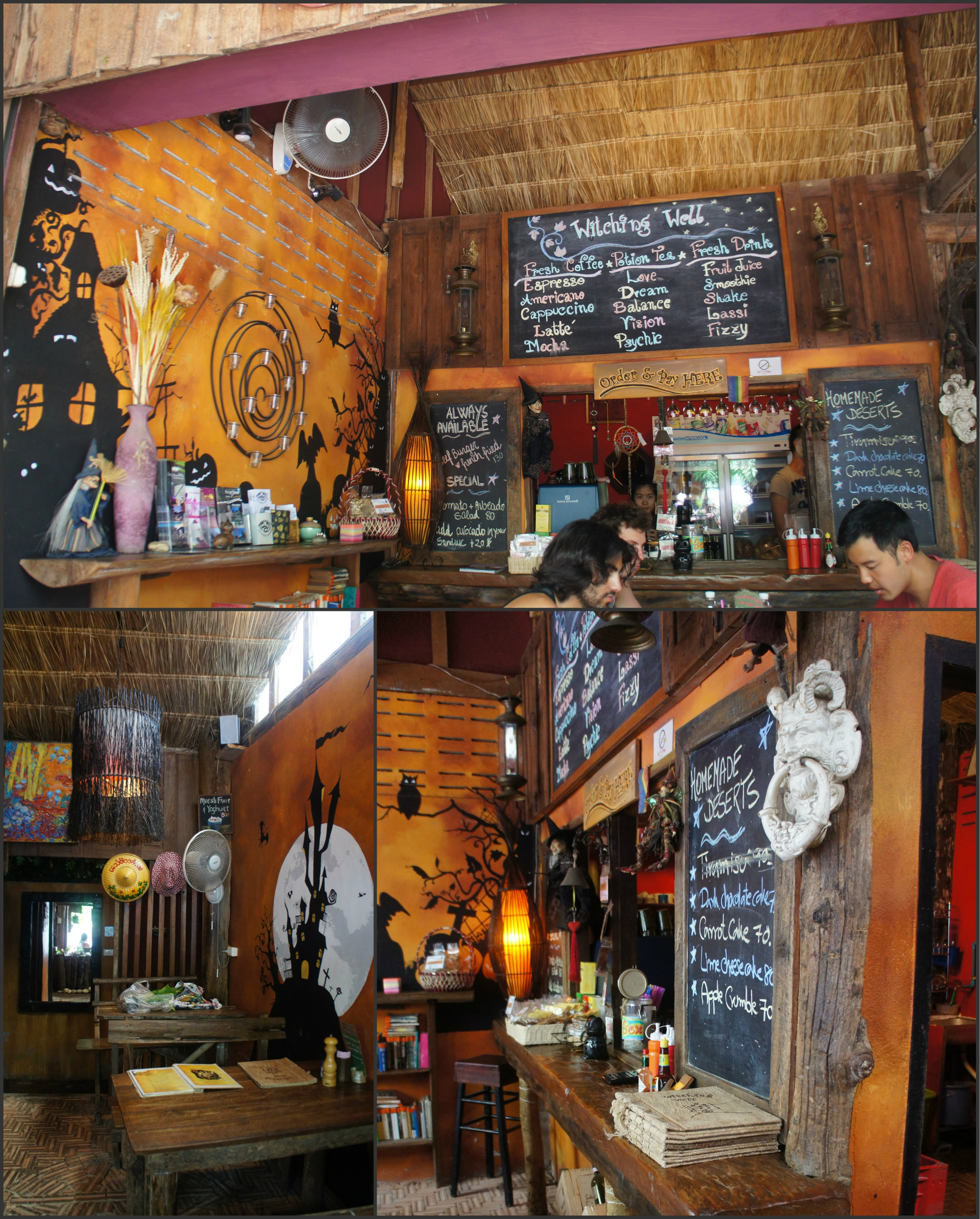 餐厅走的是女巫风。随处可见女巫的扫帚,猫头鹰,黑夜的剪影,南瓜色的外墙……