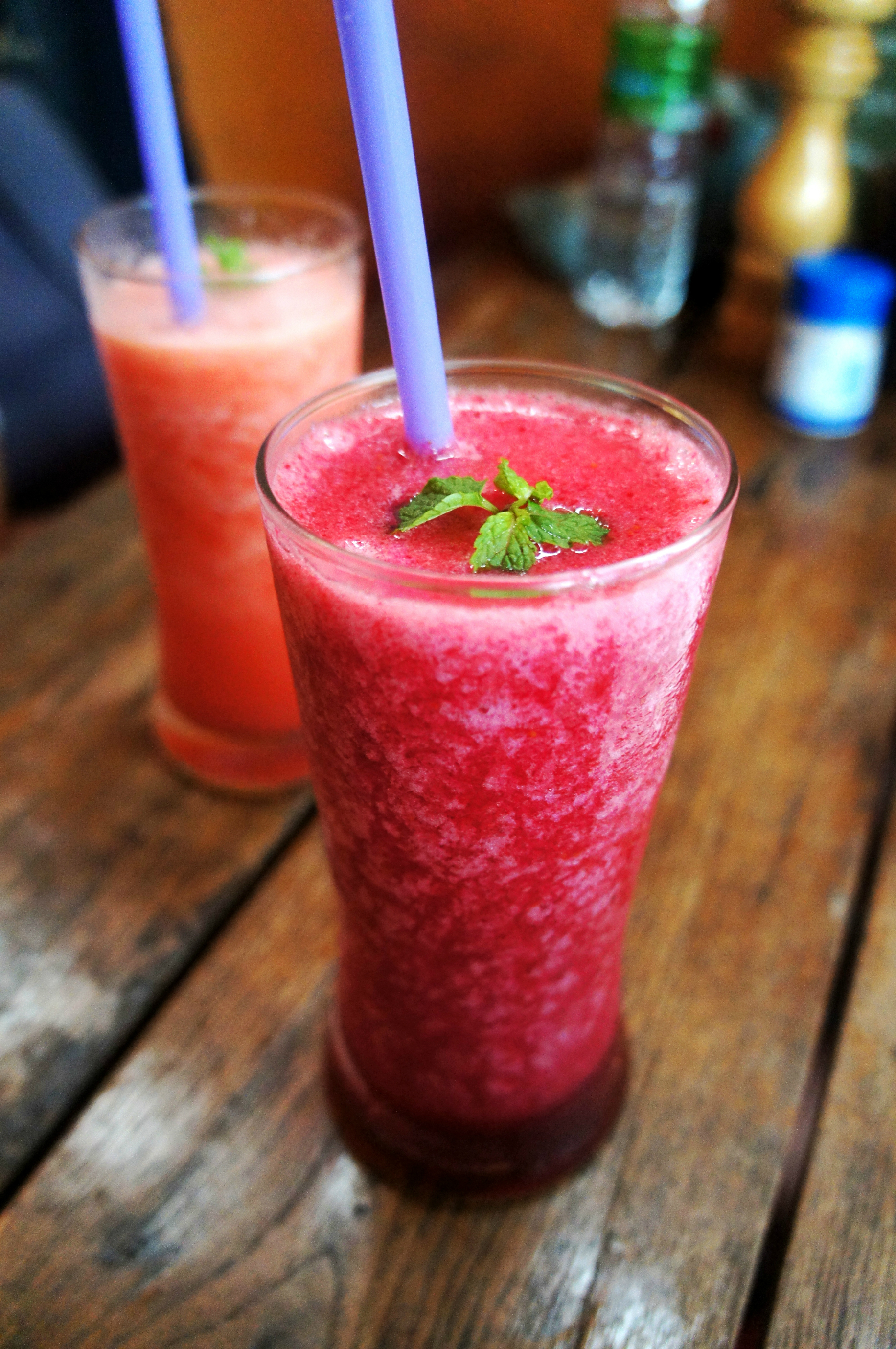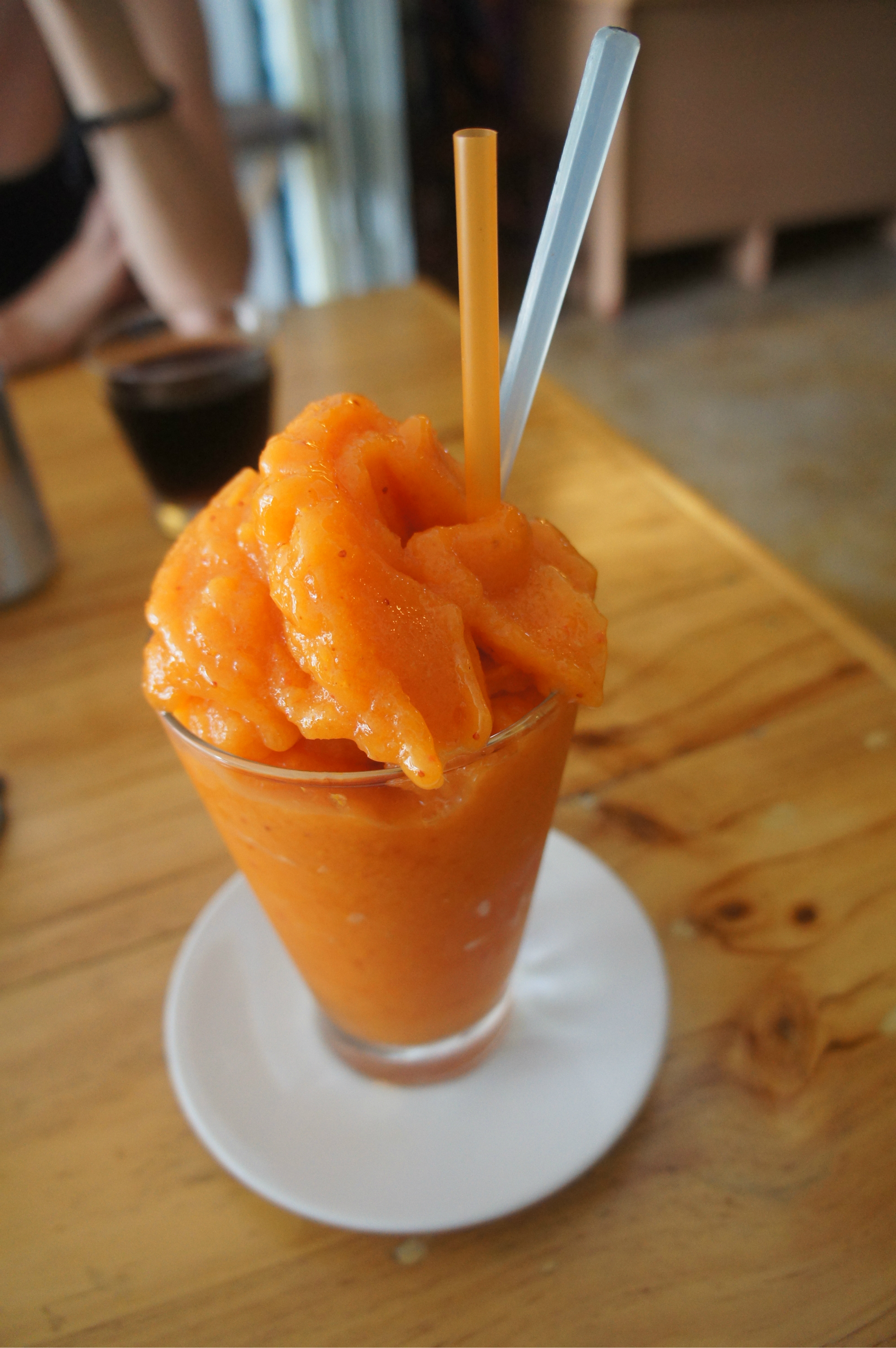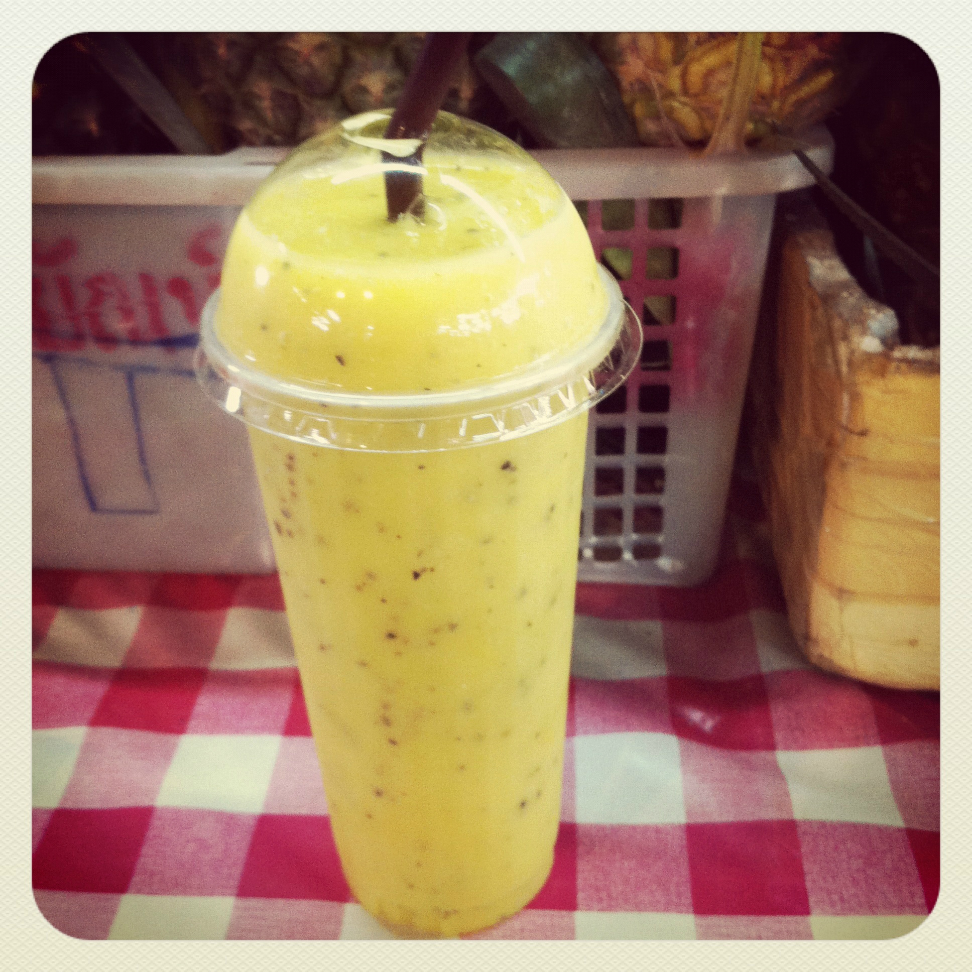 刚到清迈 ,到小鸟check-in完后便迫不及待奔向这个日思夜想的水果店。喝上一大杯芒果沙冰以解两个月来的思念之苦。味道依旧那么清甜新鲜。TIP并不会往沙冰里加 糖水或是别的色素,所以喝起来总觉得那样放心又满足。