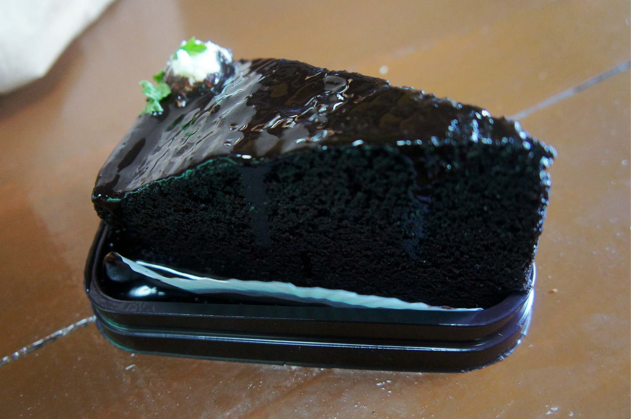 饱得快撑爆肚皮,结果侍应笑嘻嘻地过来给我们说,我们一定要吃吃他们家的cake。禁不住口水,便打包了一份黑森 林。