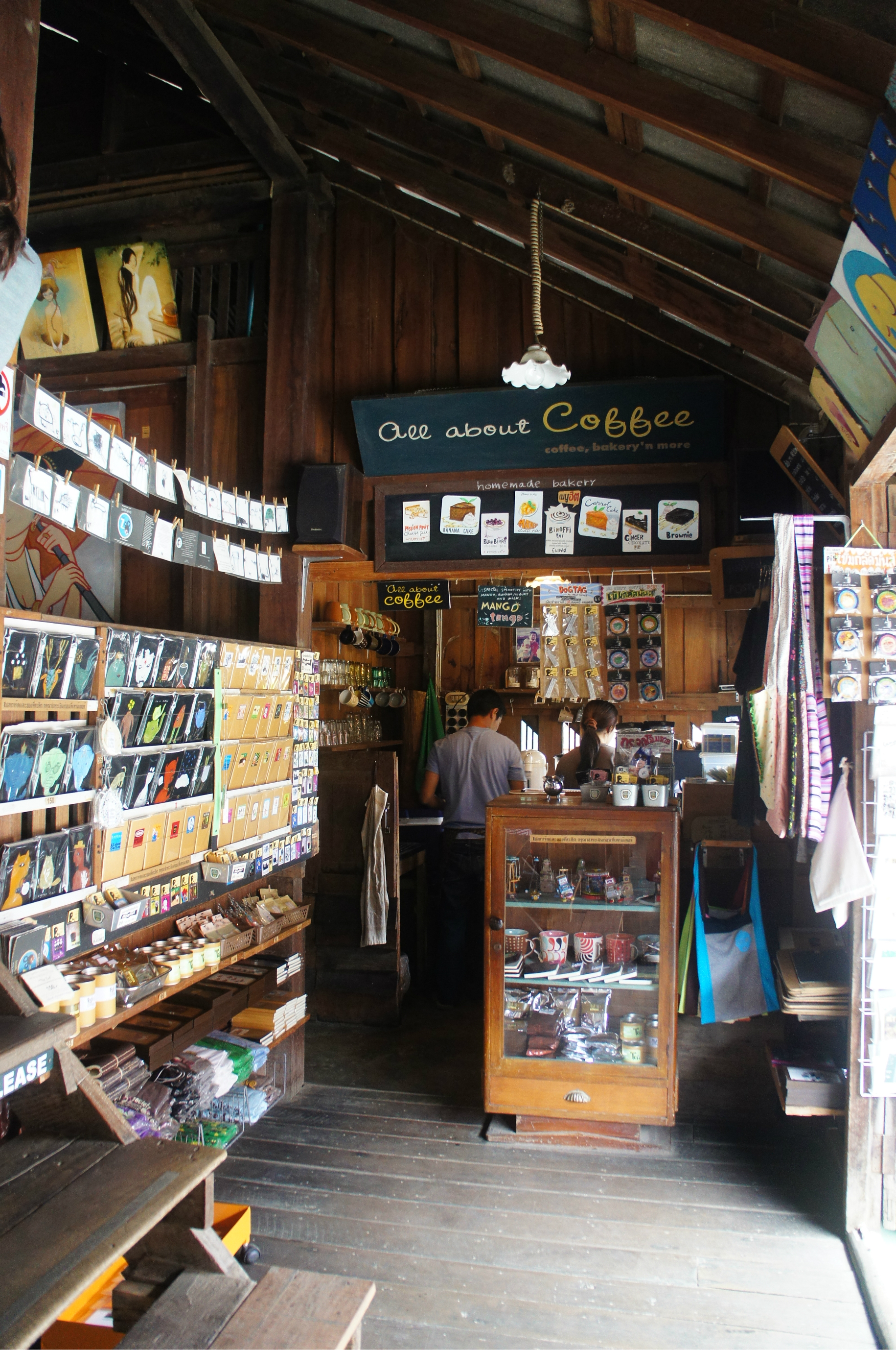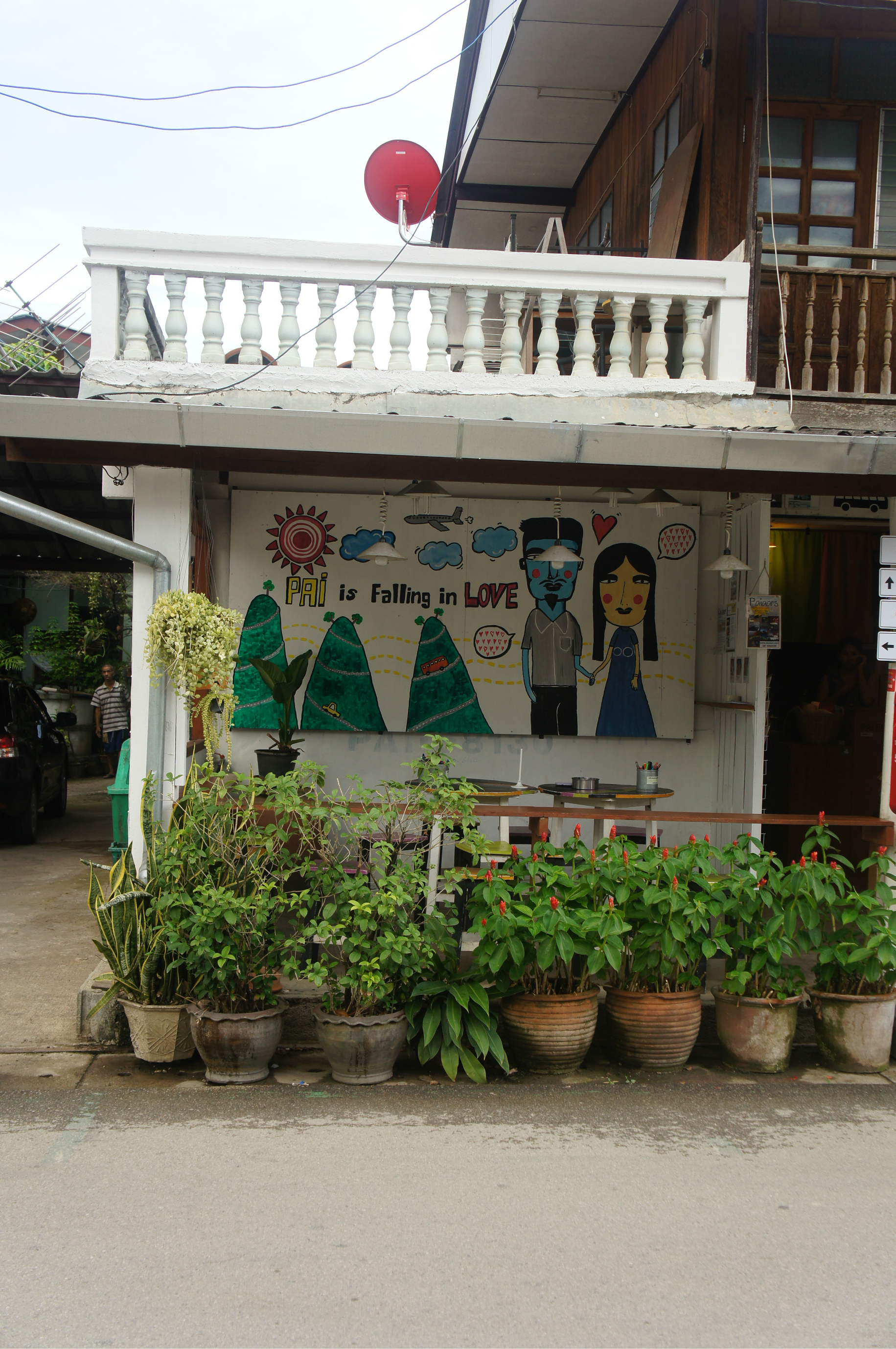 噢,对啦~在拜县 小镇里还有一家十分小清新的咖啡店叫ALL ABOUT COFFEE。这家咖啡店的小屋已经有140多年历史。老板娘与她的丈夫从前是在曼谷 的广告公司工作,两人都十分喜爱旅行。最终选择在拜县 定居,享受悠闲的日子。他们两夫妇都是艺术家,所以咖啡店里有许多他们自己画的画。与老板娘聊了许久,末了还拿起她心爱的小吉他给我弹唱了一首“I'M YOURS"呢!十分有爱。