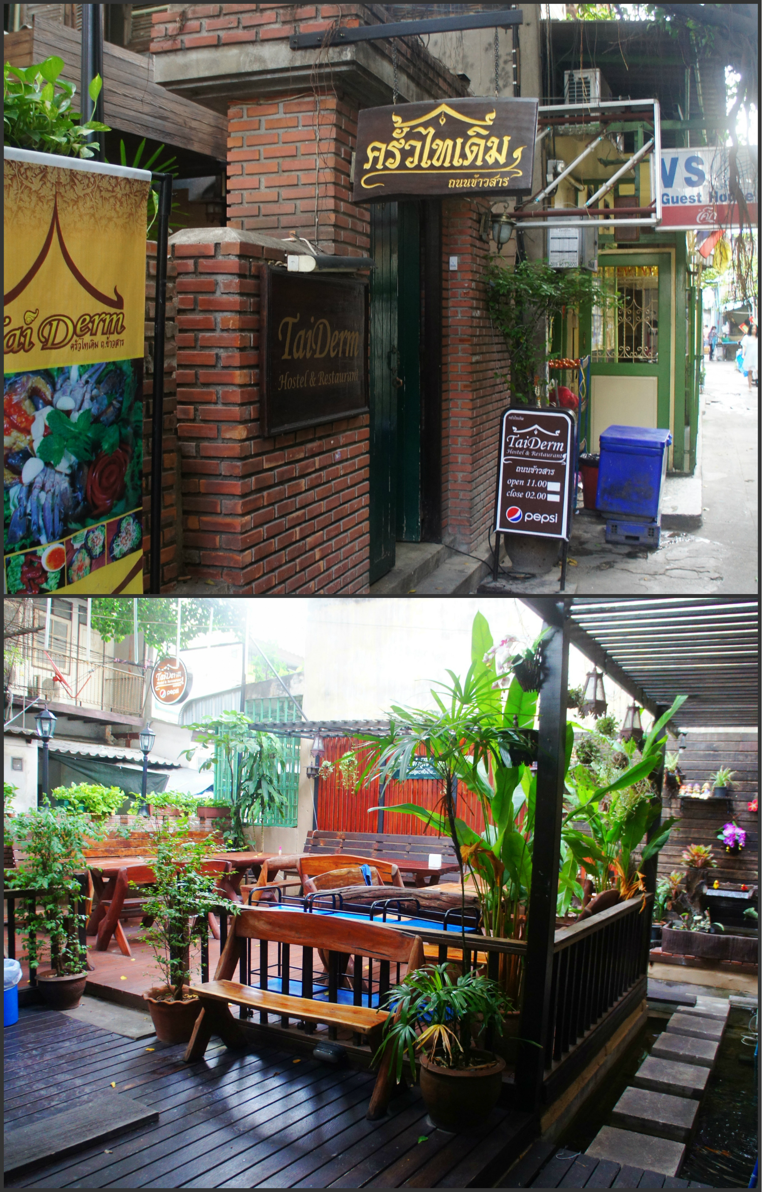 ***曼谷 住在考山路的Taiderm Restaurant, 700B(讲价讲到600B)一晚,三个女生share一张大床,有空调(好吧我们穷游省钱),包早餐(烤面包、咖啡、奶茶、茶),内有大庭院,周五周六晚上会有驻唱歌手表演,单人空调间390B(能讲价到350B)一晚,单人风扇间300B一晚。就在考山路KFC大牌子后小巷转入,没走几步就到。附近也有更便宜的,但环境和服务态度没有这家的好。