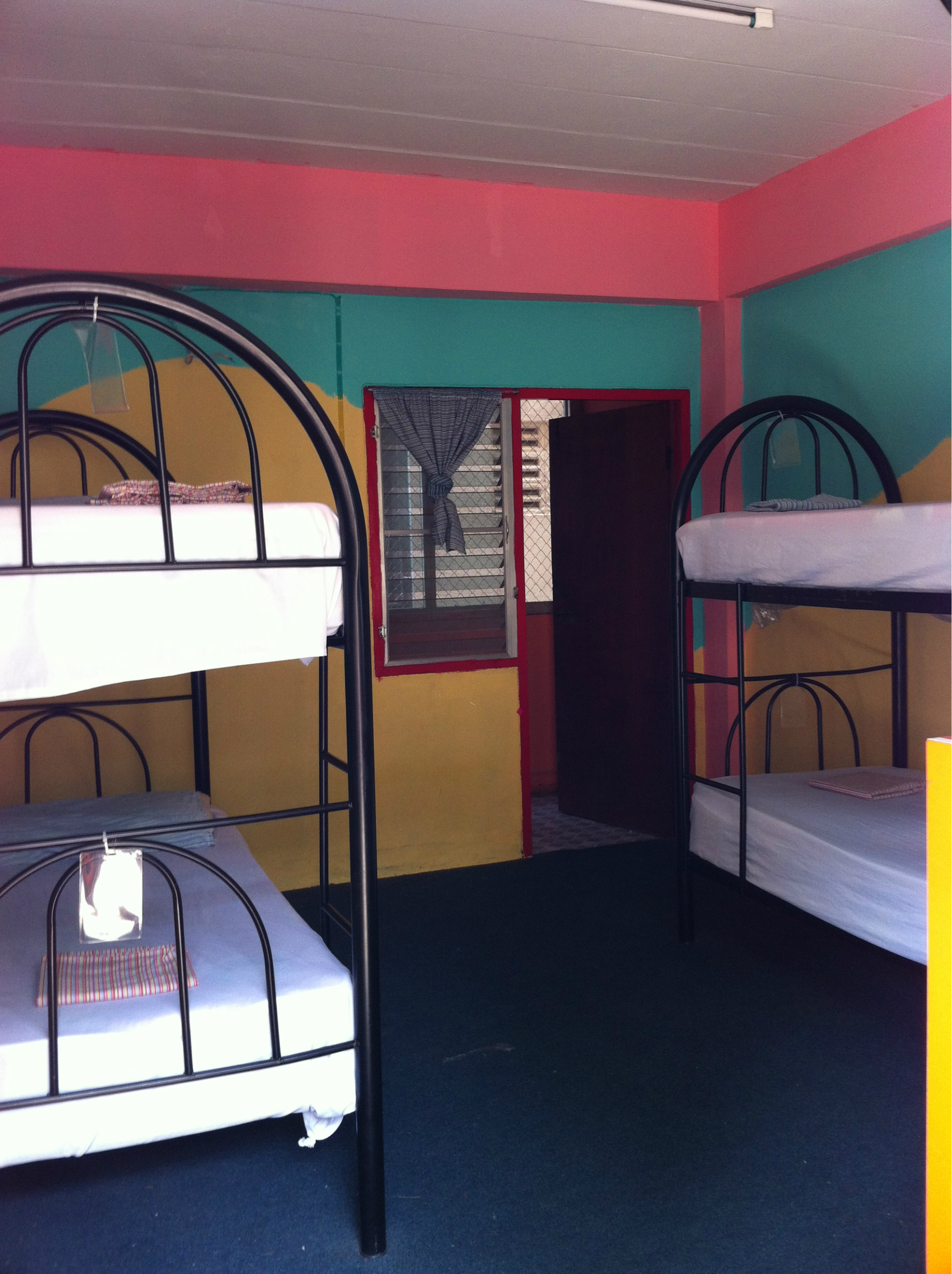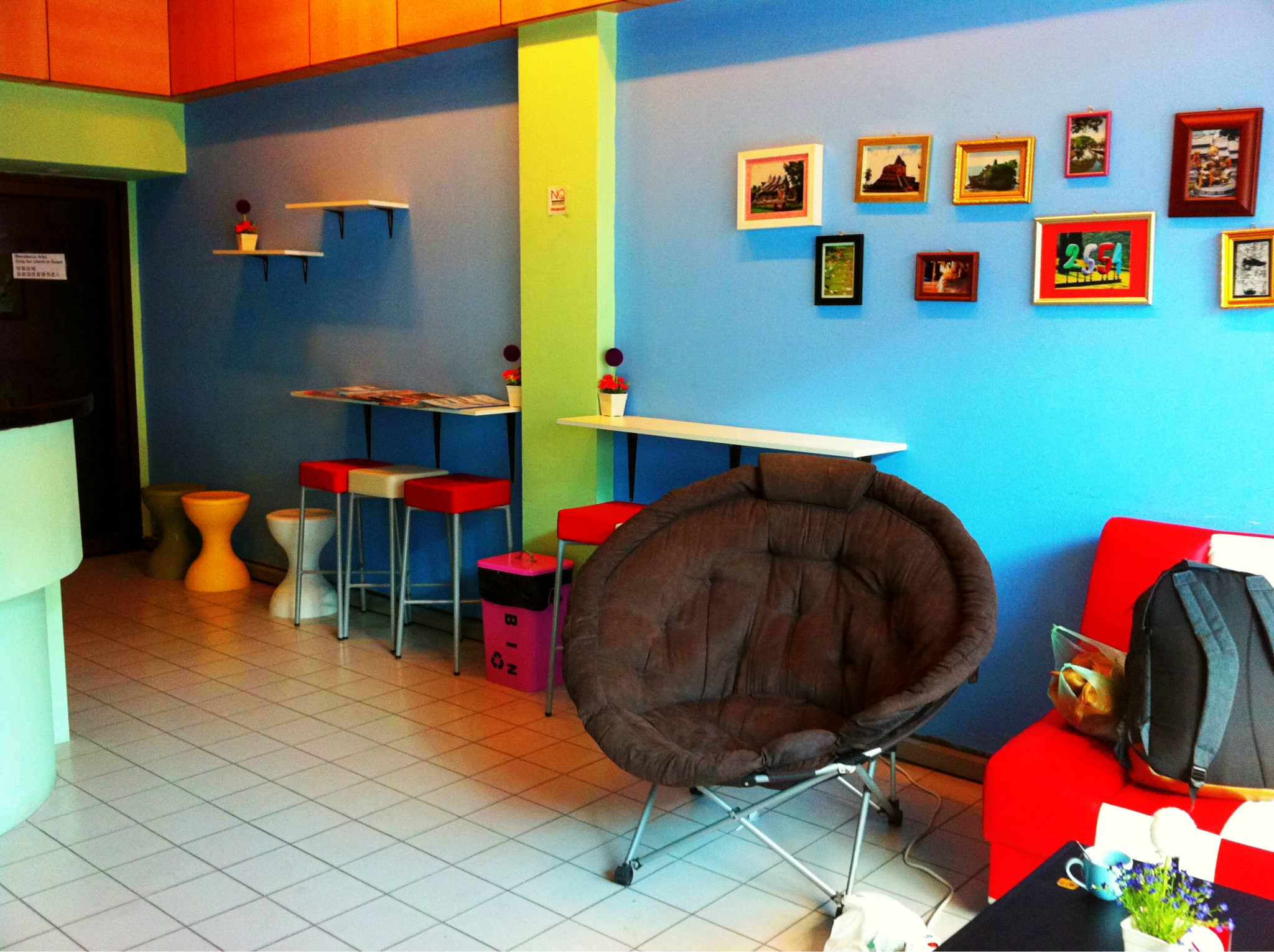我们就住在爱情巷尽头的DAY&NIGHT ***;街对面是7-11,门口便是公车站。两人间,上下铺,人均25RM(50CNY)两晚。(完全看不出来这里有巴士车站对不对!但这里就真的是***你看,两个金发碧眼的MM就是在等巴士去海边的!)
