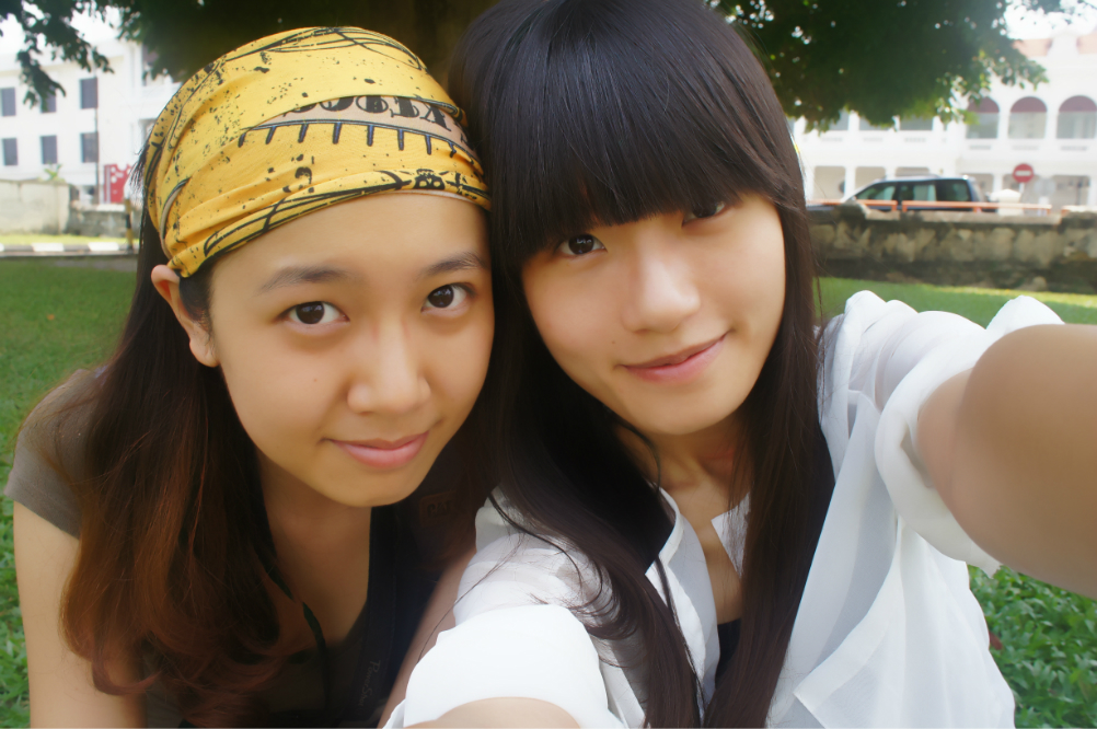 塔佩门最后的傻瓜自拍。两个少女18天一直没有涂过防晒,终于成功 晒成了当地少女。哈哈