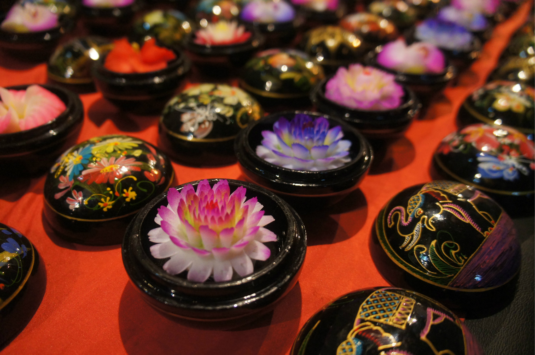最欢乐不过相中心头好,而后与老板大战几十来回最后用心仪的价格砍下小物品。相中了漂亮的木筷子,和老板磨磨唧唧,软硬兼施,嘴皮子快要磨破了终于从230B一双砍到了130B。看着老板快要哭出来的表情,虽然有那么几秒惭悔的心,但瞬间便又换上了傲娇的胜利表情。=v= 矮油,女生嘛,不砍砍价总觉得心情不舒畅。一旁的马来西亚 妹子看着我一路这么砍价,一会儿硬妹子,一会儿又变成小绵羊,硬是不肯让步,最后居然成功 拿下了三双筷子,一脸震惊得不能置信的崇拜模样。