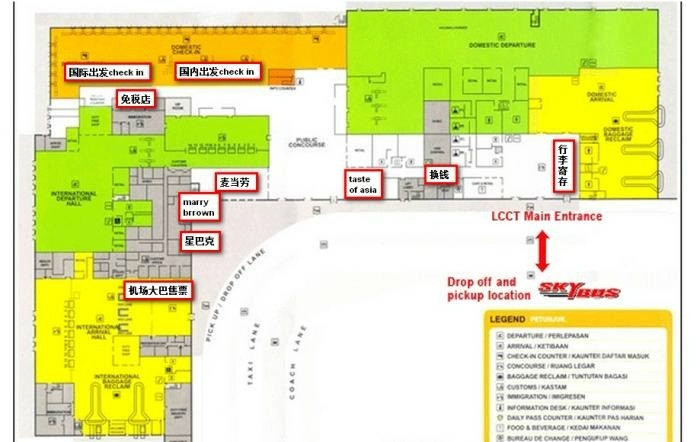 因为知道在马来西亚 有三个夜晚要分别睡在吉隆坡 LCCT机场和槟城 机场,所以提前在网上查找过睡机场的攻略。下图为网友分享的LCCT机场平面图