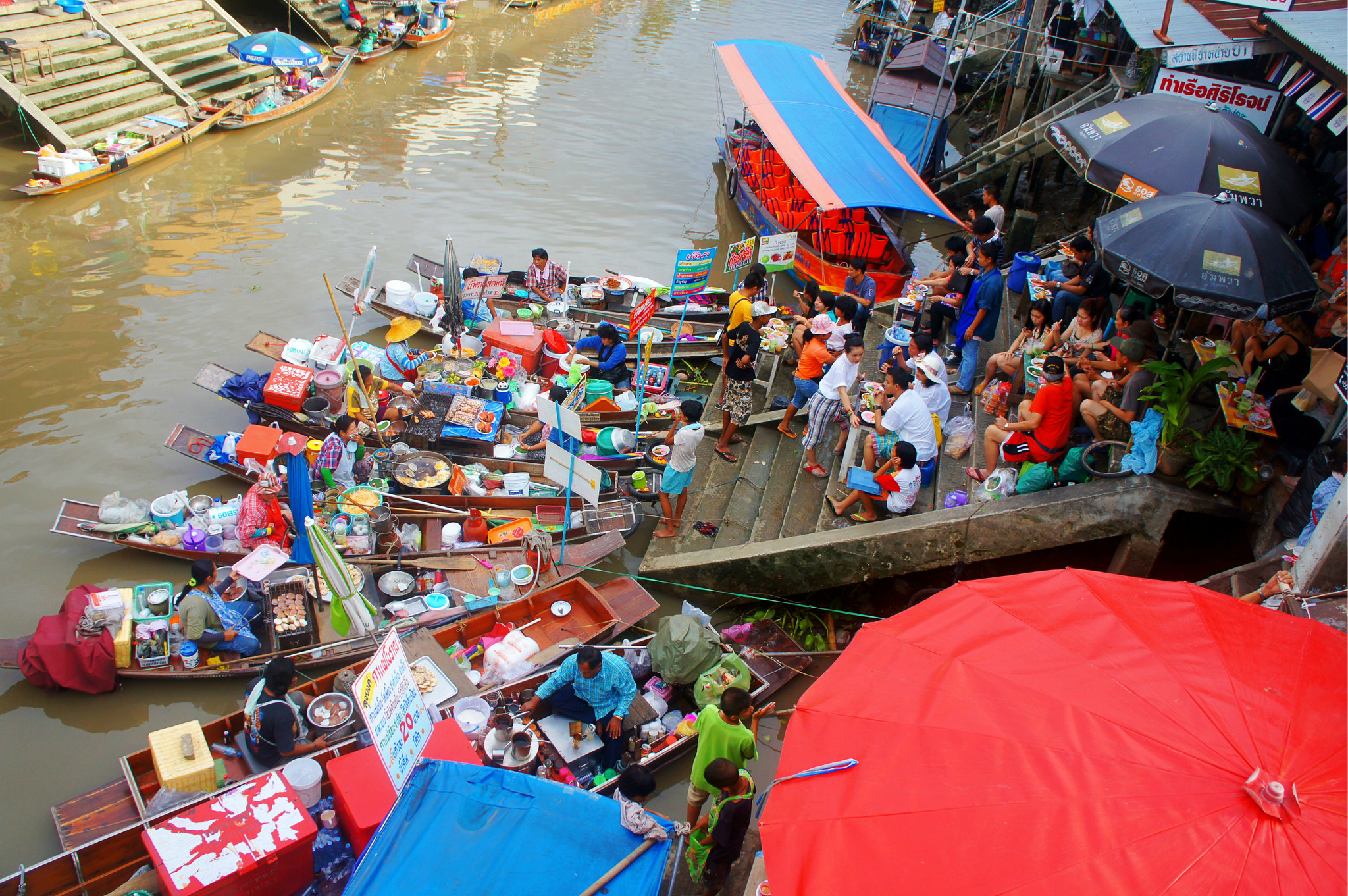 ***从曼谷 到安帕瓦 水上 集市(Amphawa Floating Market)是从考山路(Khaosan Rd.)出发,搭3/44/59/503/524号公车到胜利纪念碑广场(Victory Monument),沿着高架桥一直走,走过一条左边手很多华人店铺的路,在高架桥桥底有个专门搭Mini Van(俗称面包车)的地方,你找到一处写有去Amphawa Floating Market的牌子的就是了,70B一人,耗时1小时。到达当地,转乘双条车到安帕瓦 即可,8B一人。耗时10分钟,车子坐满就立刻开出。安帕瓦 就在一座小桥底下,转入即可。在小桥的另一边有买返程票的,20:30是最后一班车,70-80B一人,建议你们在下午6点前买好票,省得到时玩得太HIGH错过了最后一班车。车子回到Victory Monument之后打的即可回到考山路(没有回程的公交车),100B不到(尽量坚持用表算钱吧,这样会便宜很多)。