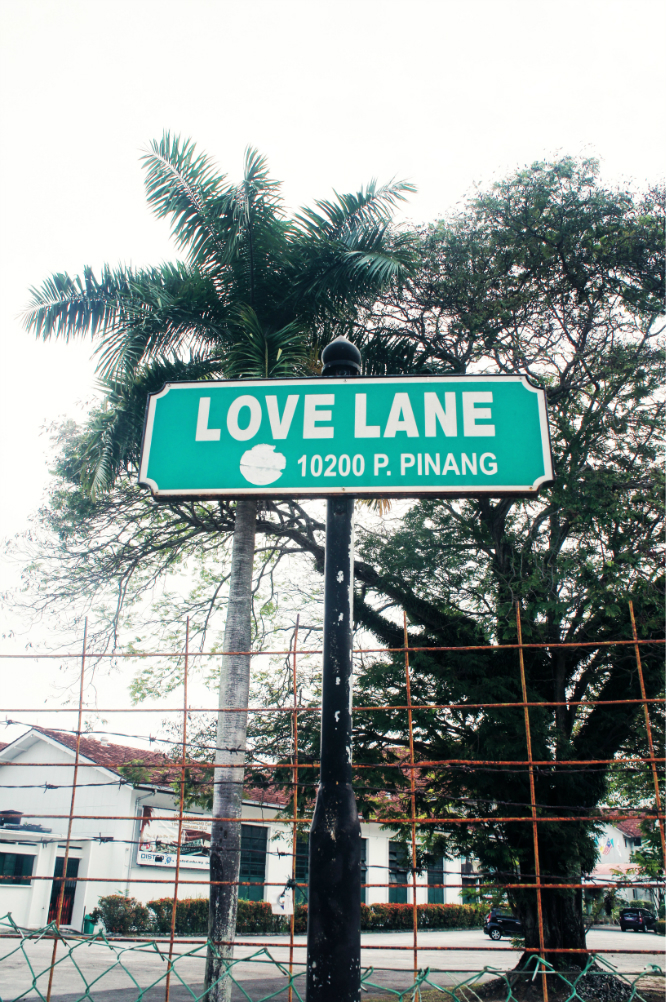 槟城 的爱情巷(Love Lane)如同泰国 曼谷 的考山路,是背包客的最爱。不同于考山路,爱情巷是个十分宁静清新的地方。小巷两旁有很多民宿和Guesthouse,价格都不太贵。巷子尽头有一家7-11,有时搭车你只要跟当地司机说到LOVE LANE以及7-11,他们便知道要在哪里放下你。