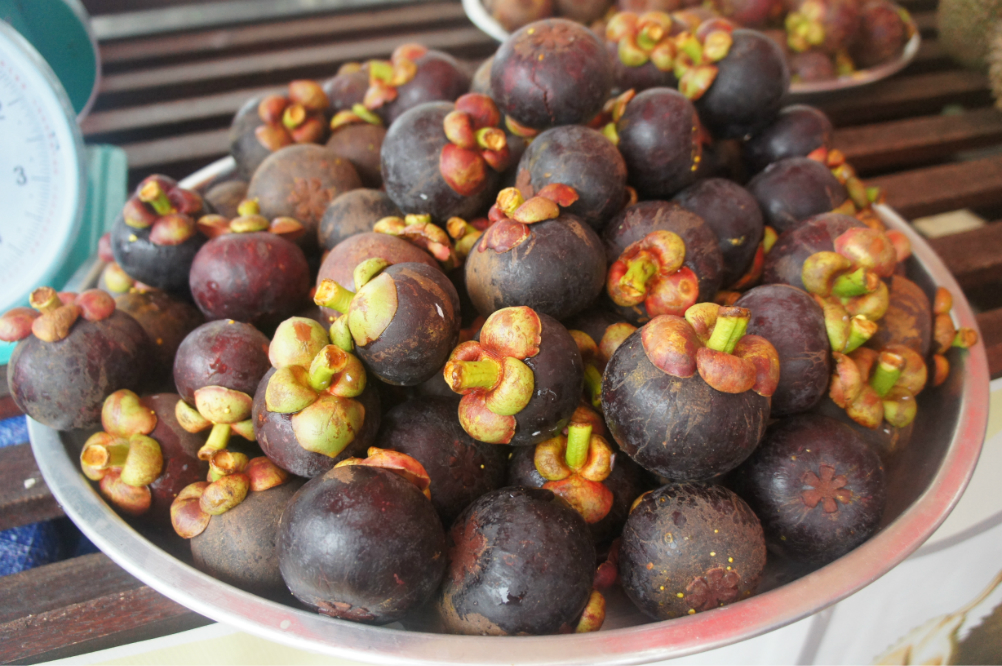 她都笑着一一解答。不时还会挑出一个“神奇的水果”,切好让我尝尝。