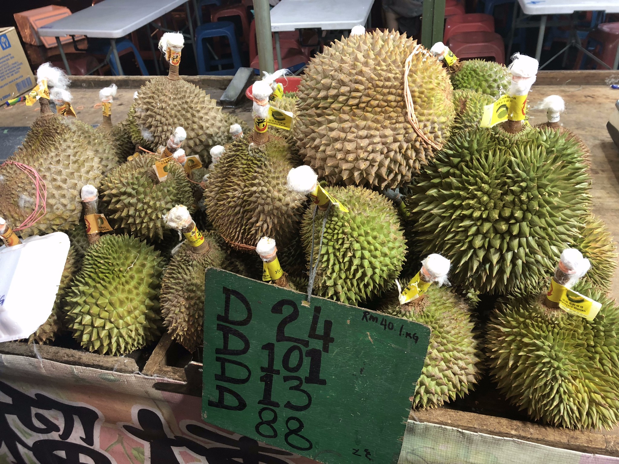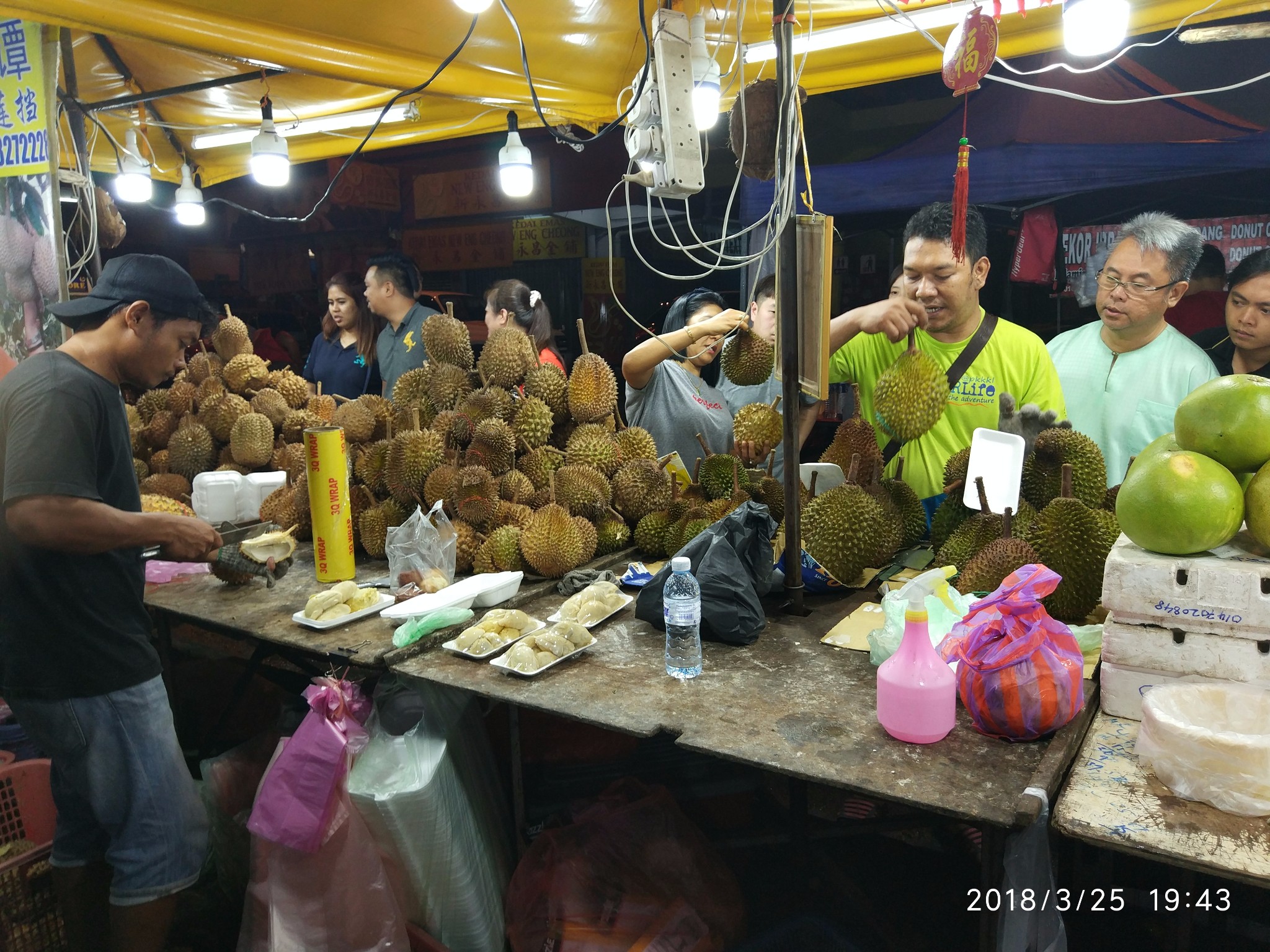晚间闲逛当地天桥榴莲市场。满足两位榴莲爱好者的愿望。