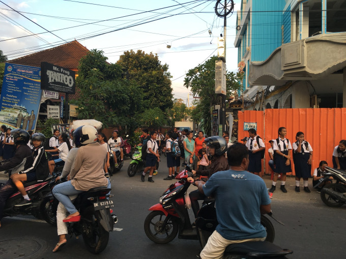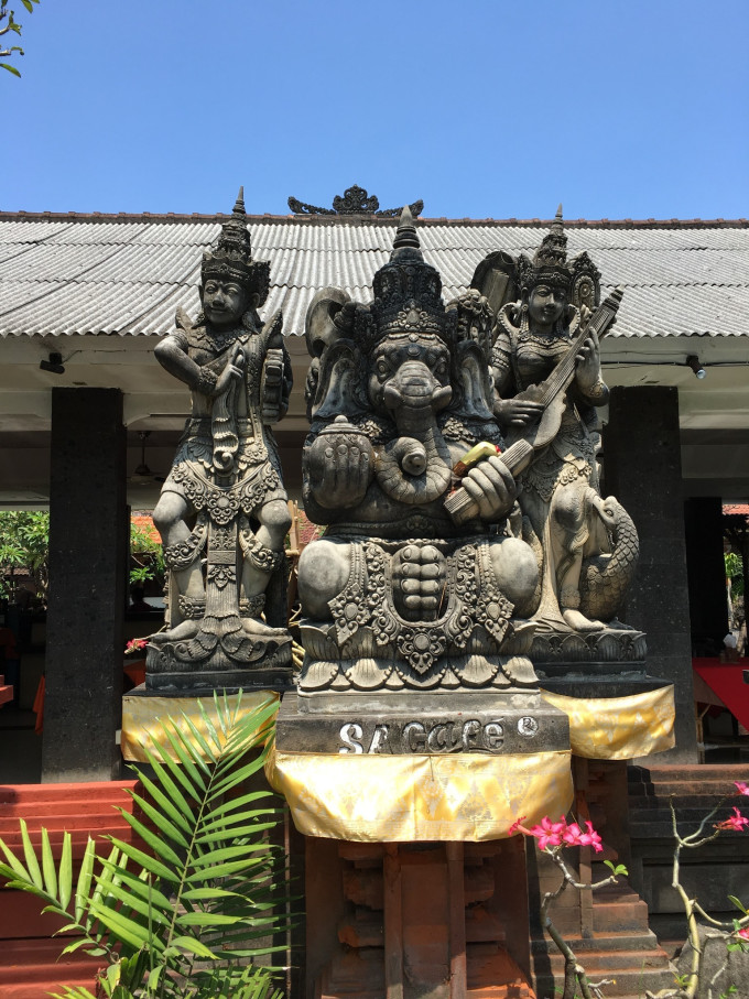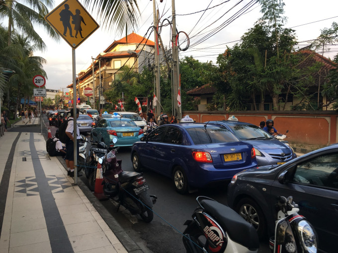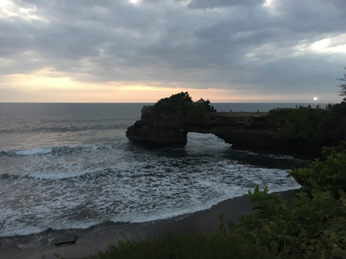 回去睡个午觉后,我们决定去趟海神庙看落日,在等车的时候,可乐想预定明天去乌布的脏鸭餐(招牌菜Smoked Duck只有提前一天预定才有),所以找前台帮我们预定。前台找了个人坐着和我们谈,我们两个你一句我一句,各种折腾竟然也搞定了,真的很搞笑。