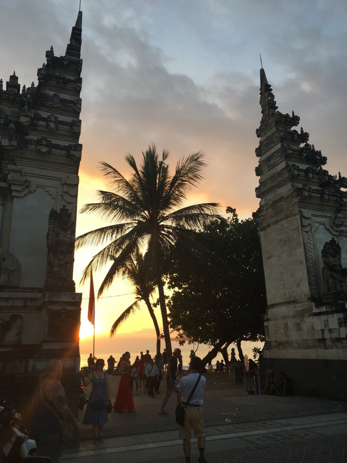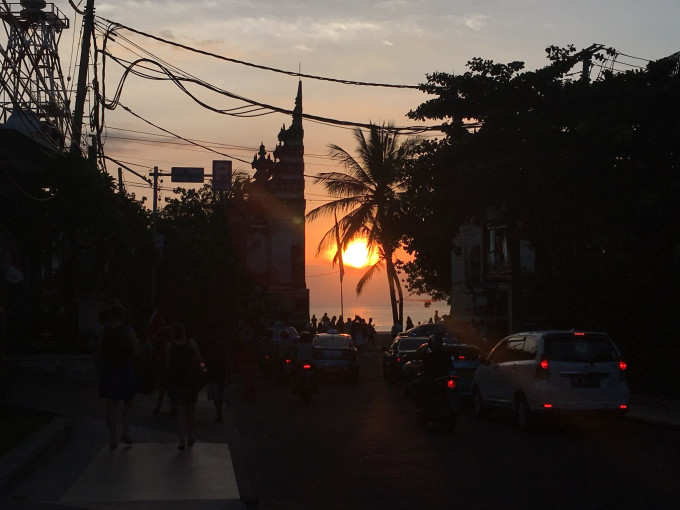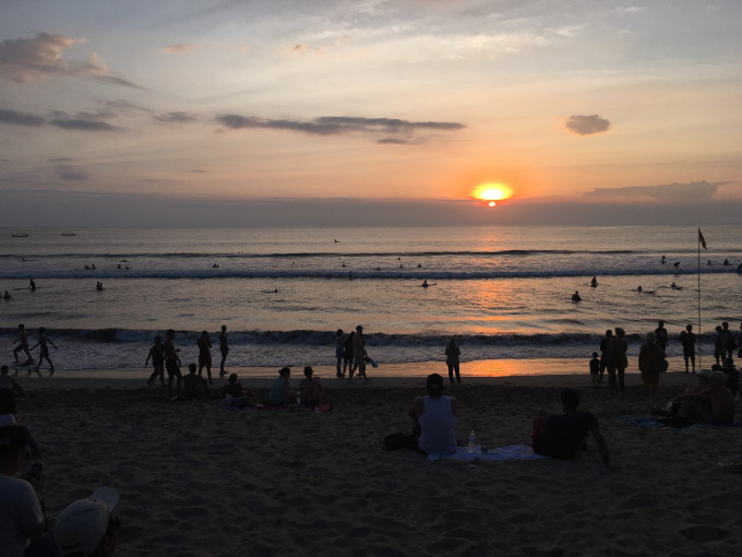 库塔海滩的日落,太阳看起来又圆又大。人太多了,不喜欢这个海滩。
