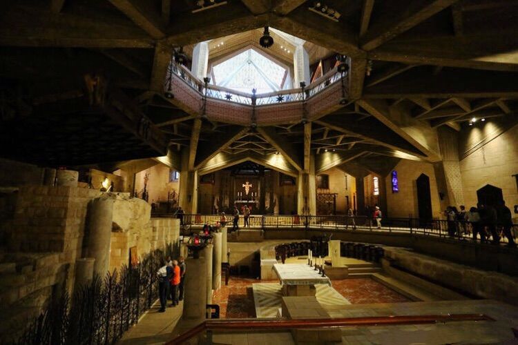 天使报喜堂是在同一地点上建立的第五座教堂,现在的教堂由意大利建筑师基奥瓦尼穆齐奥设计,1969年竣工,是中东最大的教堂。