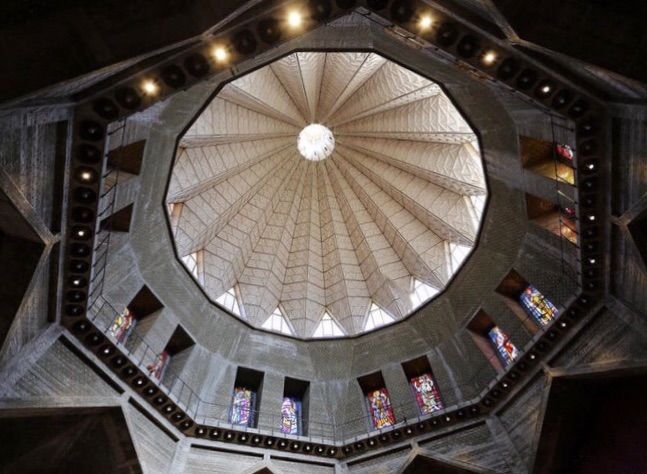教堂内的穹顶,据说,这是一朵倒置的百合花,象征圣母玛利亚的纯洁与无邪。