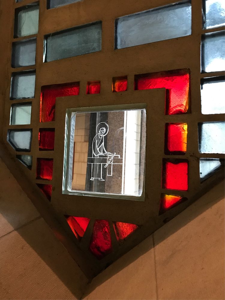 铸铜门上的浮雕故事:福音书中描述耶稣的父亲木匠约瑟和母亲圣母玛利亚就住在这里。天使长加百利到拿撒勒,告诉玛利亚,她因圣灵怀孕,所生的是救世主。