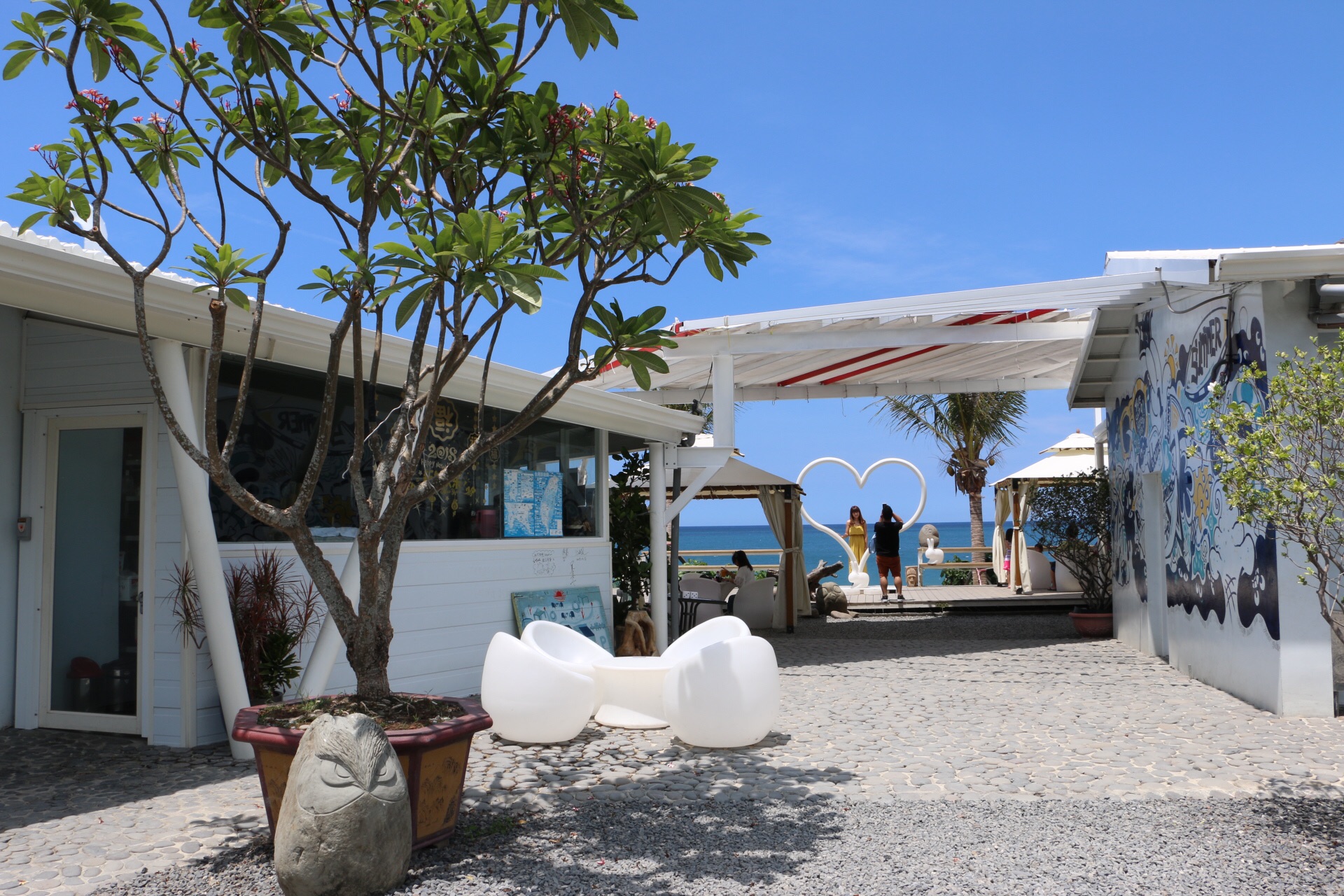 途径可以看海喝饮料的咖啡店,很多当地人也在这里玩~