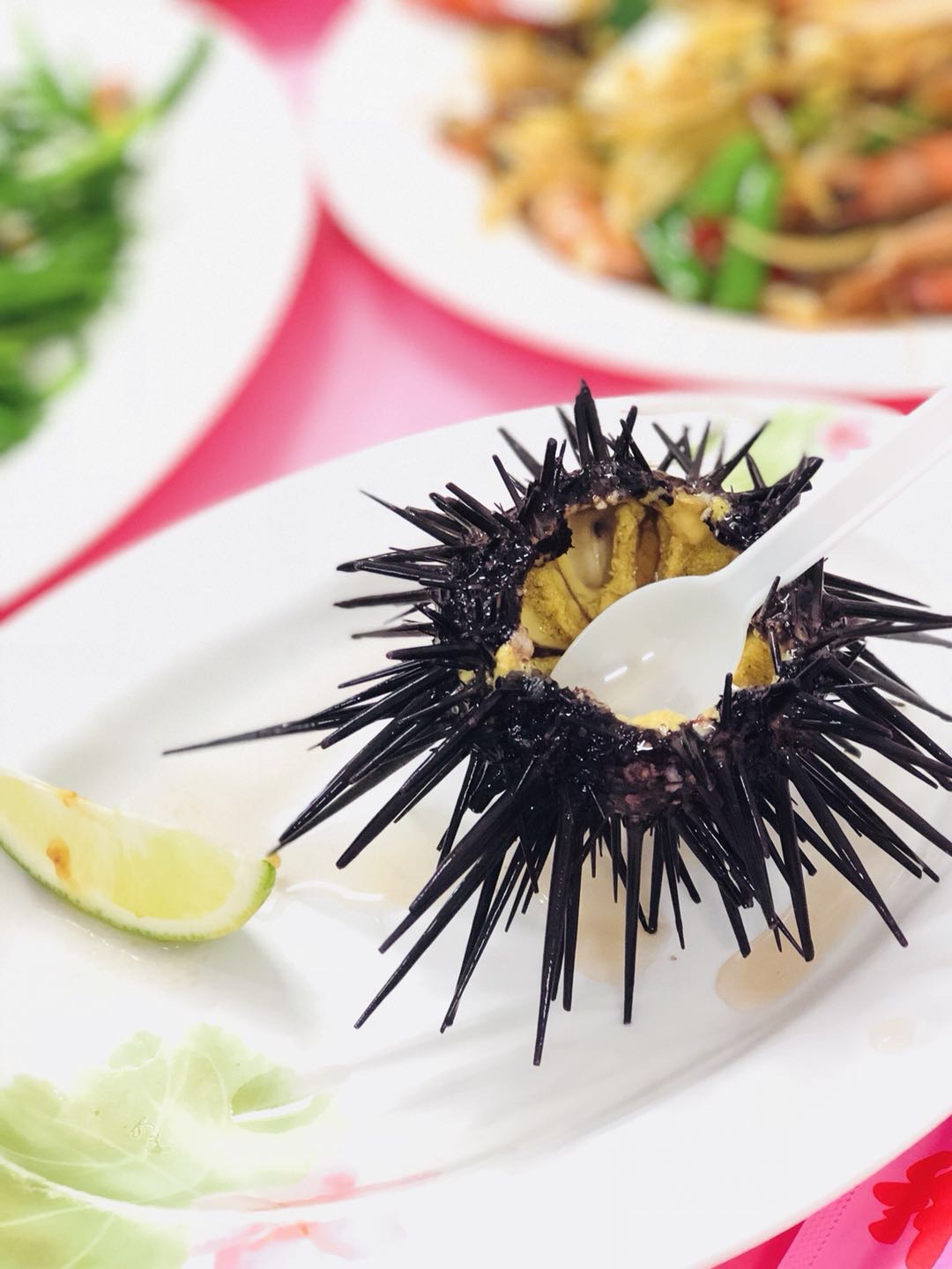 打卡网红店阿兴生鱼片,量足,味道不错,价格也公道,成为网红还是有道理的。我们四个人吃了螃蟹、虾、海瓜子、海胆、生鱼片,也就600多人民币。