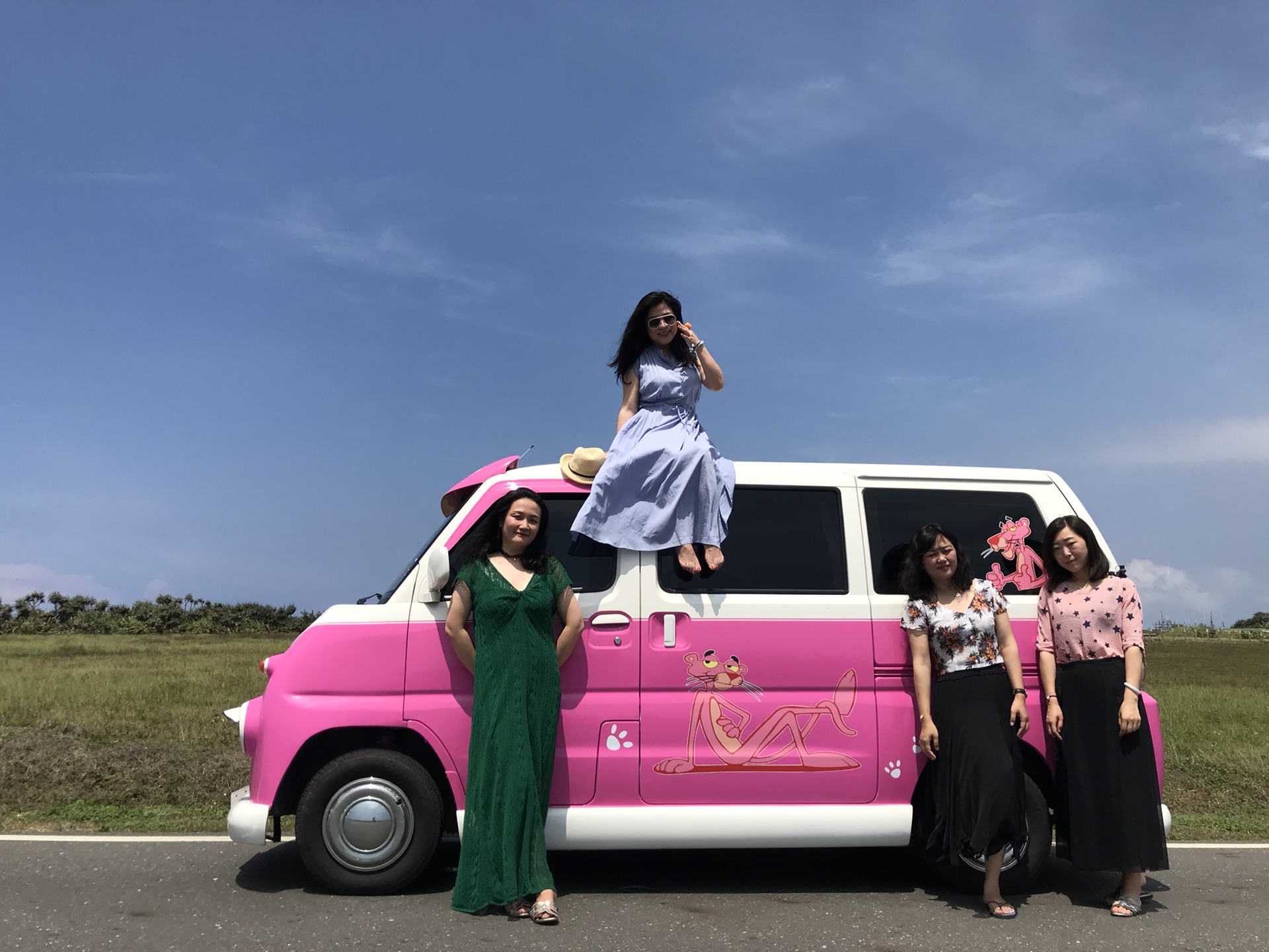 不知是不是太过兴奋,第二天小伙伴们纷纷表示昨晚失眠了。阿豪9点就过来接我们,他的粉红豹才换了颜色2天,真的很打眼,第一眼看到它觉得,哇,真是要有浓浓的少女心才能hold得住啊!结果后来大家都喜欢得巴着它狂拍照。。。