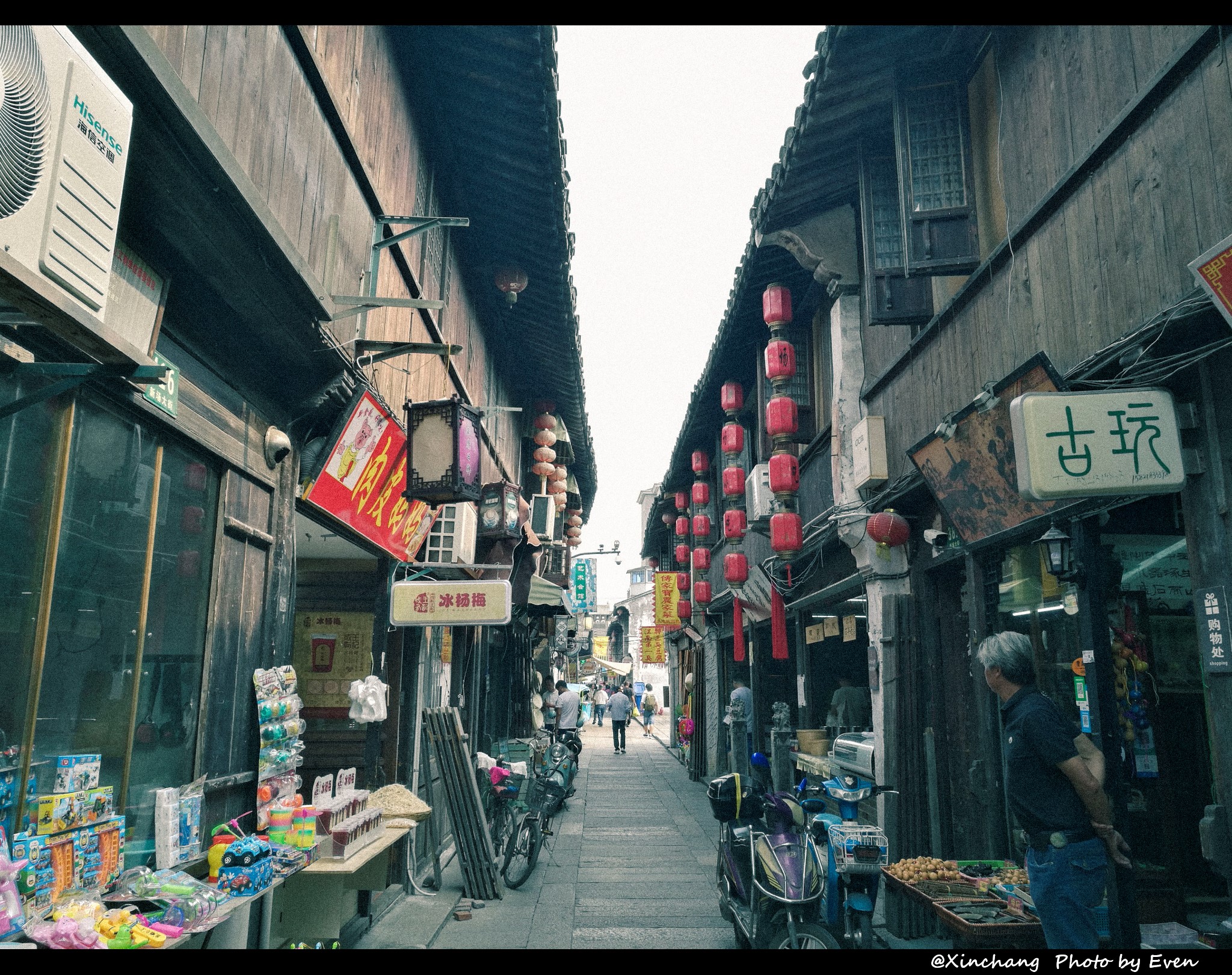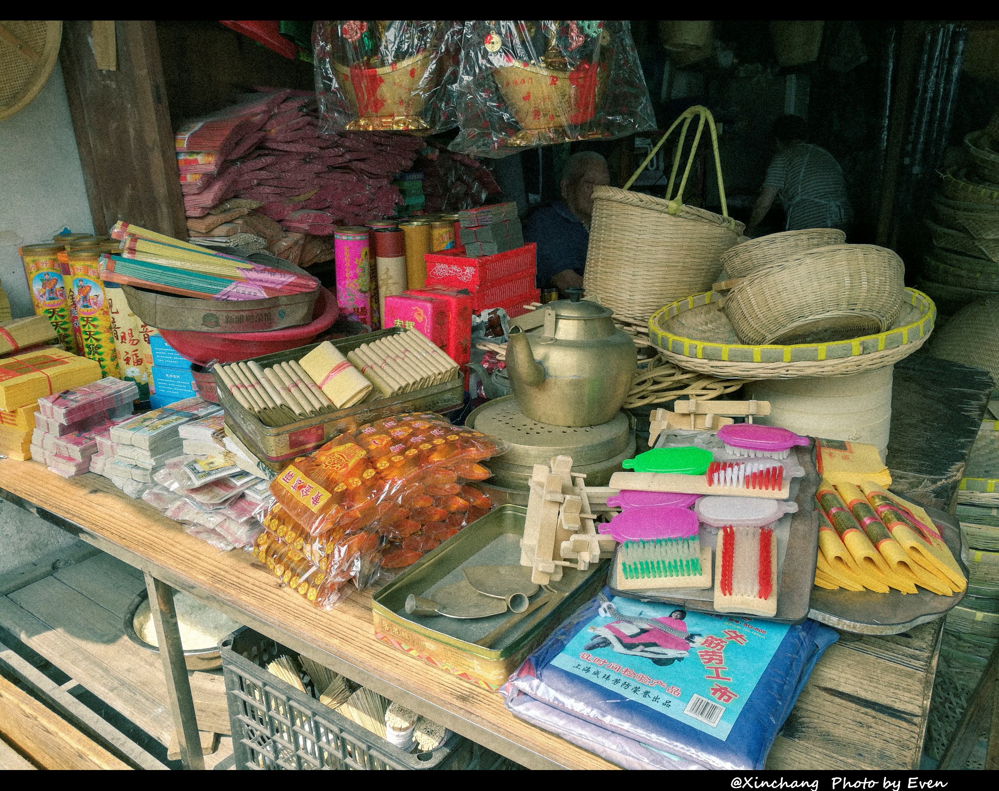 沿街商铺里的商品琳琅满目的,几乎把能展示的都挂了出来,就怕顾客不知道自家的东西够齐全。