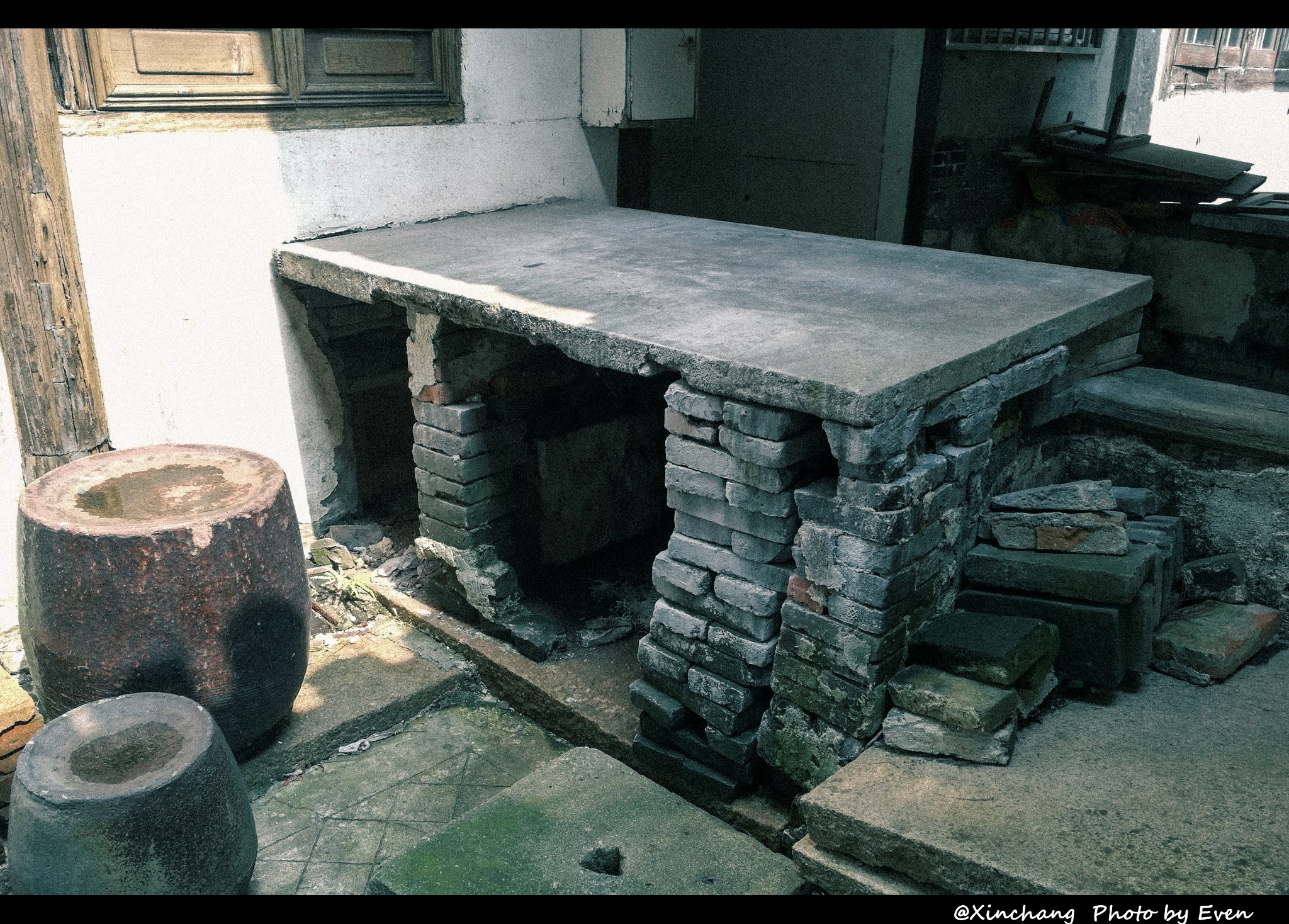 这个水泥板不是什么料理台,而是用来洗衣服的,我小时候母亲就是在这样的水泥板上给我洗过衣服。冬天亦是如此,单就在室外沾水已是十分艰苦之事,更别提什么热水器了,父母这一辈都是苦日子过来的。