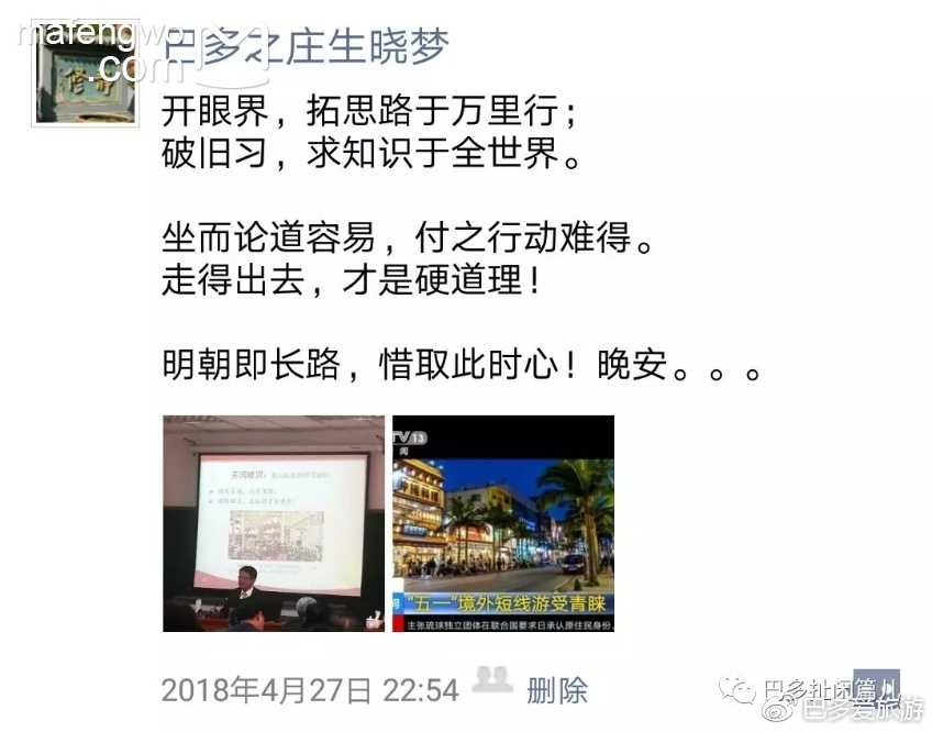 4月27日晚上9:30左右,我们才忙完回到家中,还好一把手前一天晚上已经把东西收拾的差不多了,晚上简单整理一下就赶紧睡了,因为导游要求第二天凌晨5:00在T3集合开出团会。按照惯例,睡前老巴在朋友圈里发出了出行的预告。