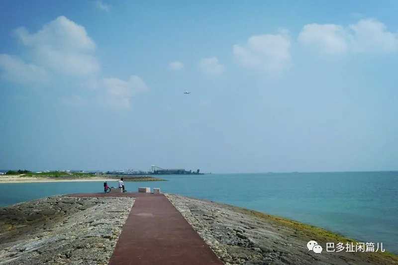 吃过午饭,下午首先来到了一个景点,叫“丰崎海滨公园”,这里是一个浅浅的海湾,有沙滩,有海堤,大片的火山岩和遍地的白珊瑚,有点让我们想起了广西北海的涠洲岛。