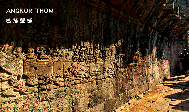 和吴哥窟里主要是佛教教义壁画不同,这里主要是人民的日常生活,更多世俗画面的呈现。