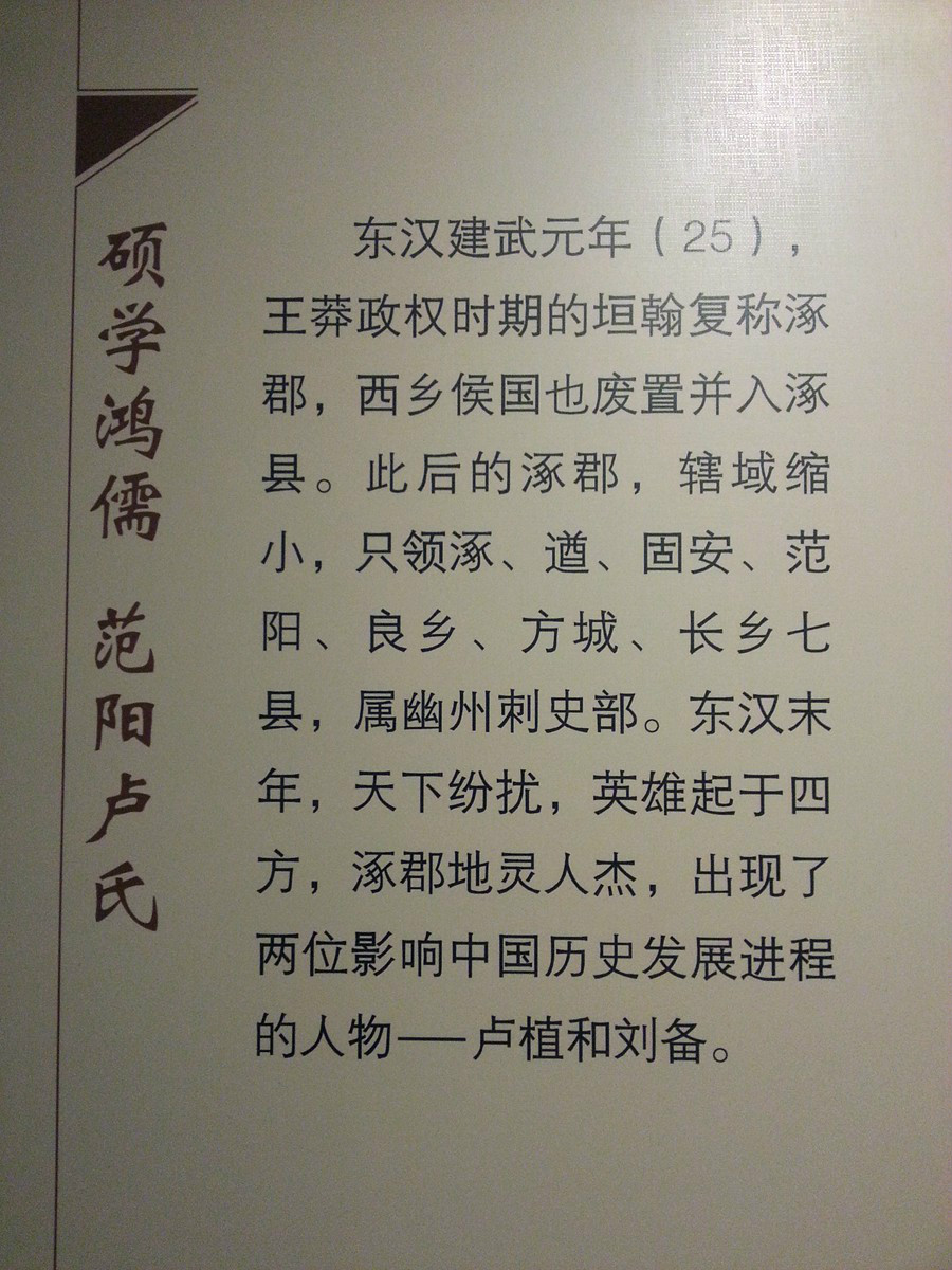 听说涿州有了博物馆。而且大家反响还不错。于是也去尝了鲜。居然真的很不错。涿州作为历史文化名城,闻名遐迩。近年来也恢复性的建了一些景点或古迹。可到此一游的人总是很难将亲眼所见和那响亮的名号联系到一起。有了这博物馆,很好的梳理记录了历史长河中涿州的经济、文化的发展变迁,介绍了有关的名人、古迹、著名的历史故事,考古发现等等。把一个历史文化名城,鲜活的,逼真的呈现在大家面前。尤其是对于生于斯长于斯的本土人来说。从那一张张精心制作的铭牌上,展品上,图片上那些自己极为熟悉的地名上嵌刻的故事,一下子大大增加了自己的家乡自豪感,历史厚重感。走出博物馆,仿佛当前的自己和之前相比,多了一丝沉稳,多了一点涵养。这种莫名的力量,就是主此事人和操此项目的参与者的最大功绩。代表我自己,先感谢一下他们吧。