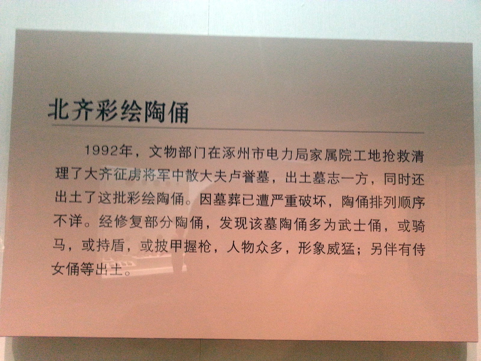 博物馆的设计是比较现代的。展品和布展也有一定的水准。按照动线设计了几个展。通史站、石雕文物、民俗文化、汉代墓葬发掘和革命史。可惜少了直奉大战,张学良傅作义于涿州的那一场战斗。不过相信未来会有的。也许会有一个专门的展览呢。