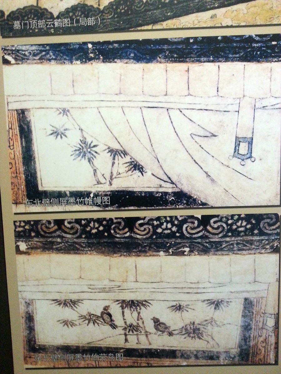 这个辽代墓出图的时候,本人可是亲眼见了。不几天,那彩绘的壁画就褪色了。当事还痛心疾首。还好,看来在现有的条件下,及时进行了照相留影。不然,我们绝看不到今天这些。