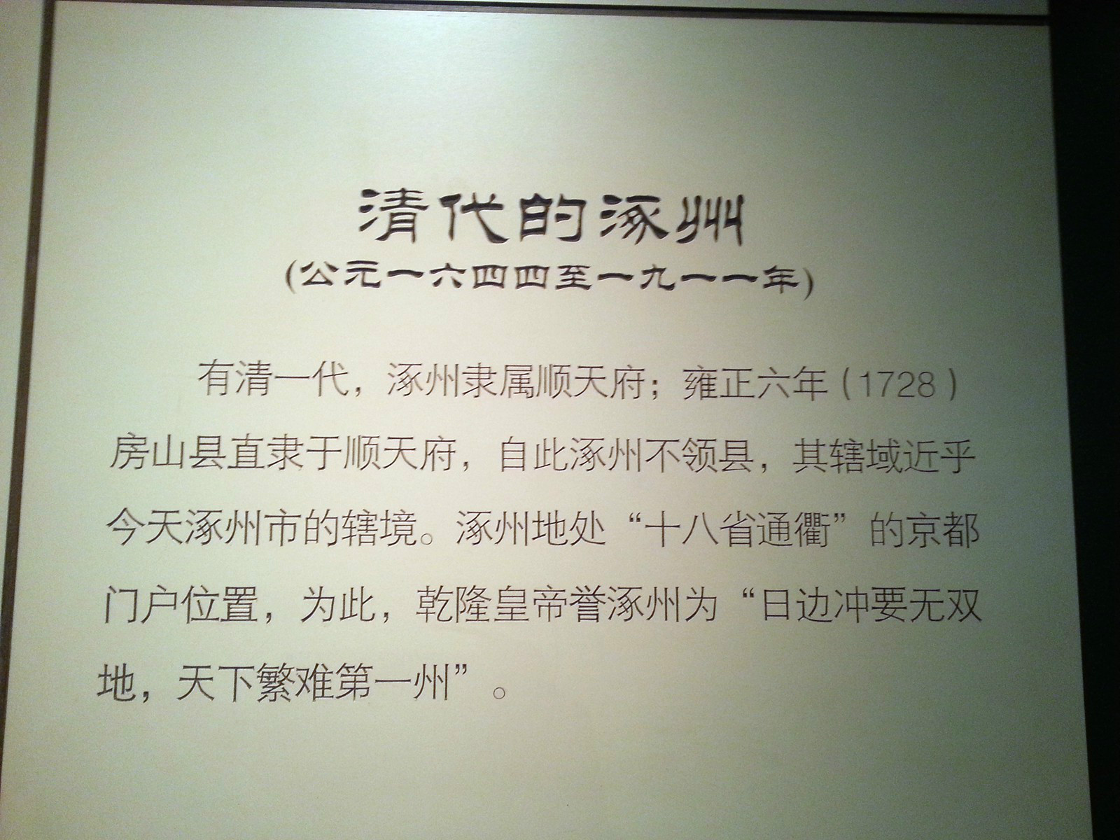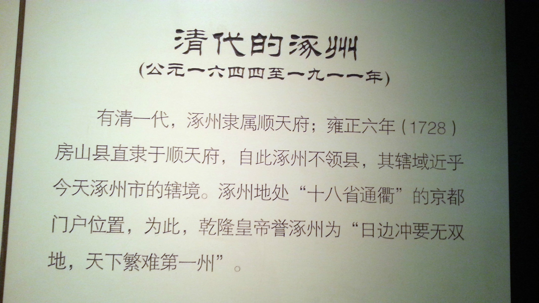 一、涿州通史展