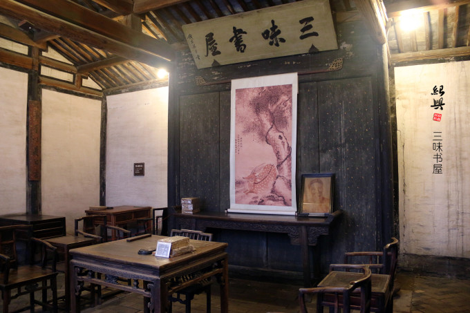 如今的三味书屋从建筑外墙到室内陈设以至周围环境,基本保持原来的面貌,与鲁迅先生在文中描写的一样,“从一扇黑油的竹门进去,第三间是书房。中间挂着一块扁道:三味书屋;扁下面是一幅画,画着一只很肥大的梅花鹿伏在古树下。”
