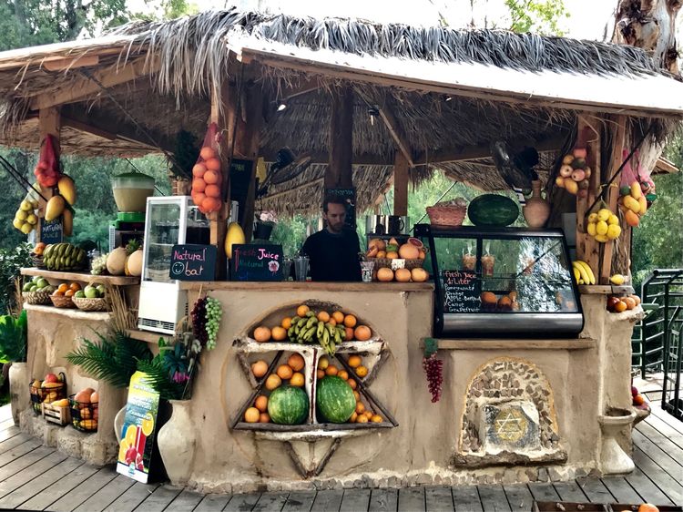 洗礼圣址旁的水果亭,水果品种非常丰富,摆放水果的格子是以色列国旗上的六角星,在这儿可买到新鲜的水果榨汁,很是诱人。