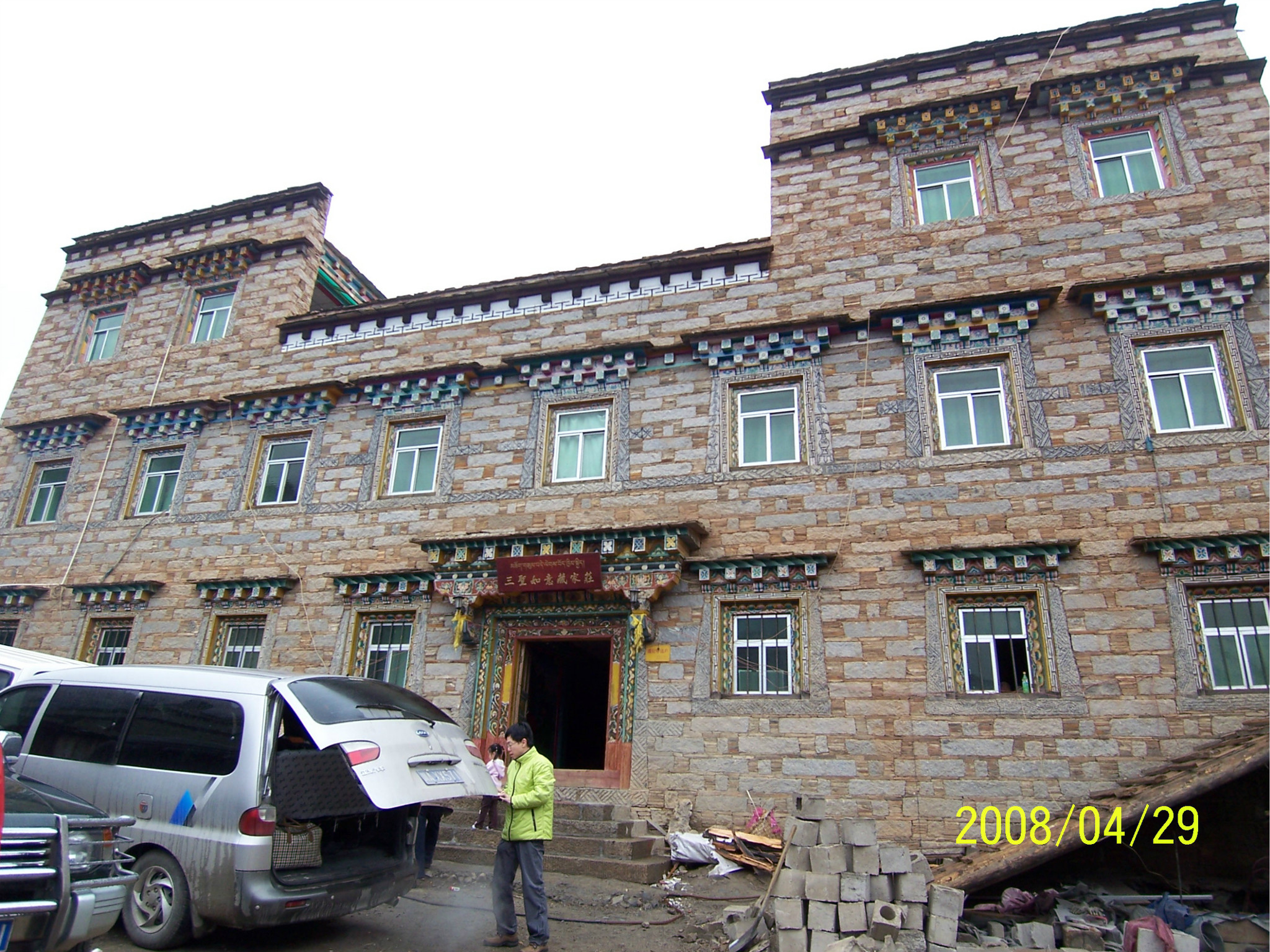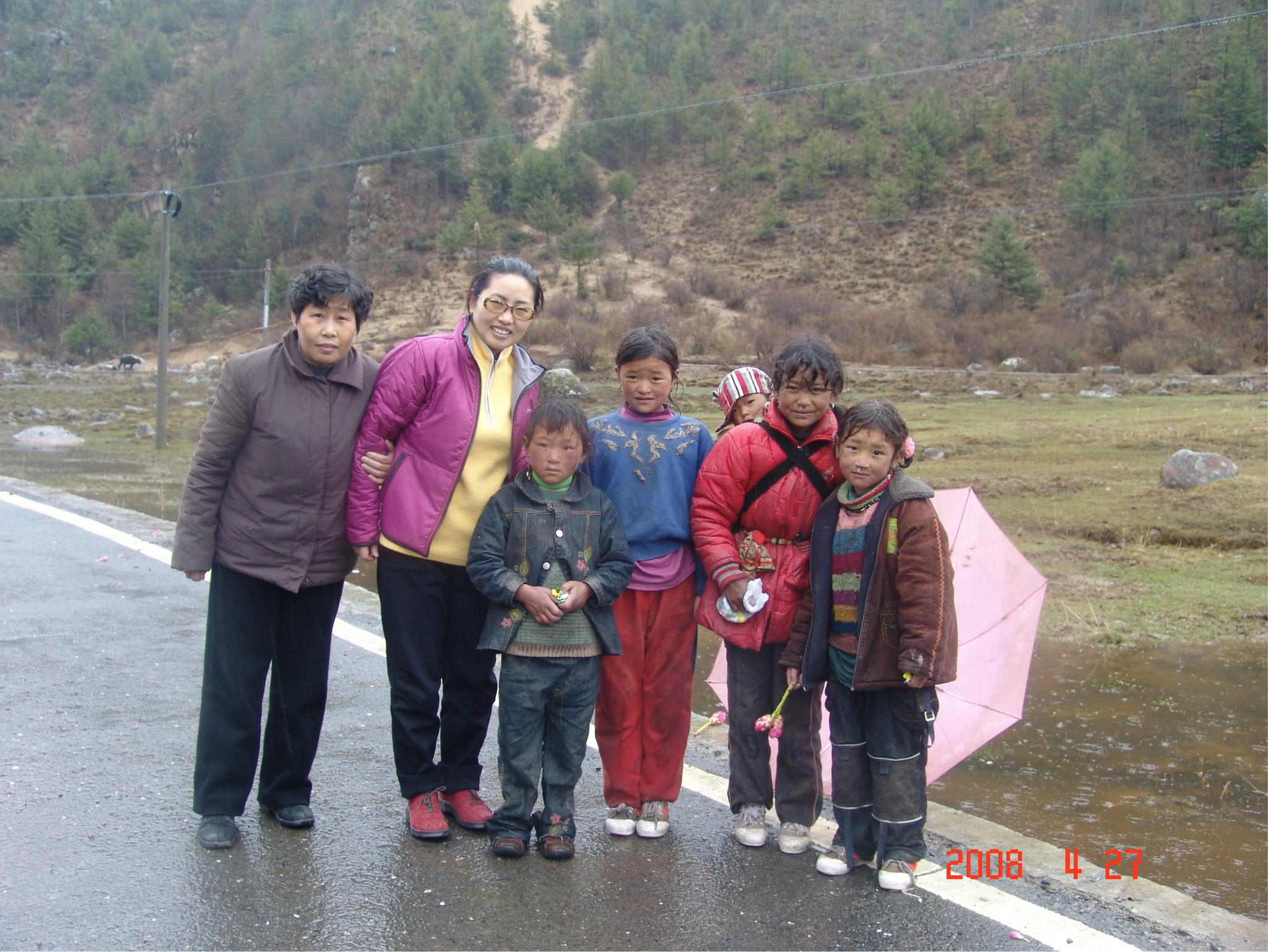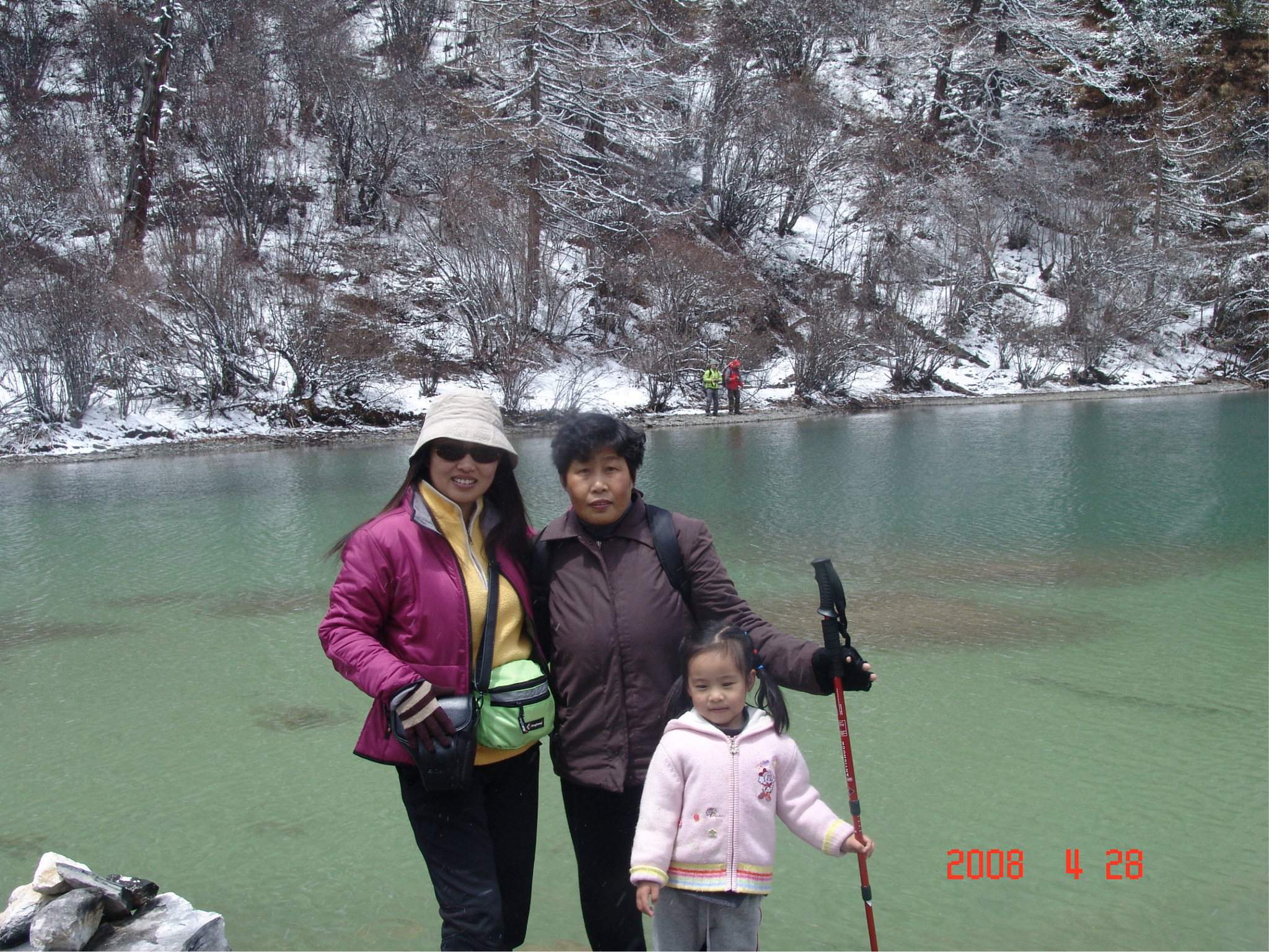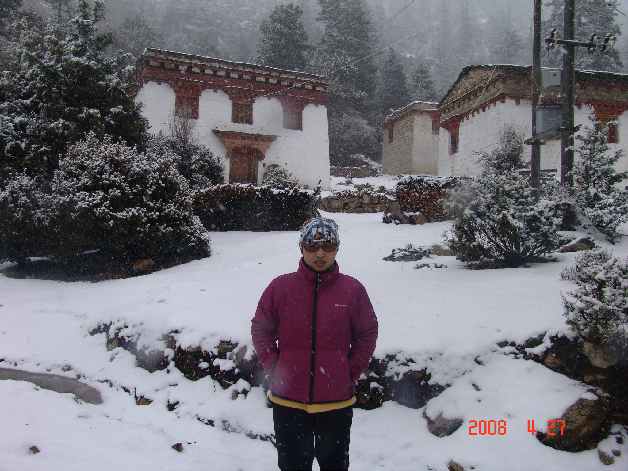 当天,是dadd的生日,一个多么特别的生日。因为当时他正经历人生的第一次,也是最苦的一次挫折,这也是我们为什么出游的原因。他,爱雨天,爱雪。大早,我们从亚丁返回,一路白茫茫的一片洁白的世界,我的内心深深的激动,感谢诸神给daddy送来这绝无仅有的礼物!雪越下越大,到了一个制高点,我们的车就陷在雪中一丝不能挪动了,任凭司机师傅和我们五口之家全力以赴。可能是老天的意思:慢一点,停下来,欣赏一下美好的身边吧。后来,此程唯一的一路驴友--三人一司机来了,用他们的车把我们拖出雪地,哈哈。难忘啊,天地之间,依然没了之间,恍恍惚是在天堂之中小歇了片刻