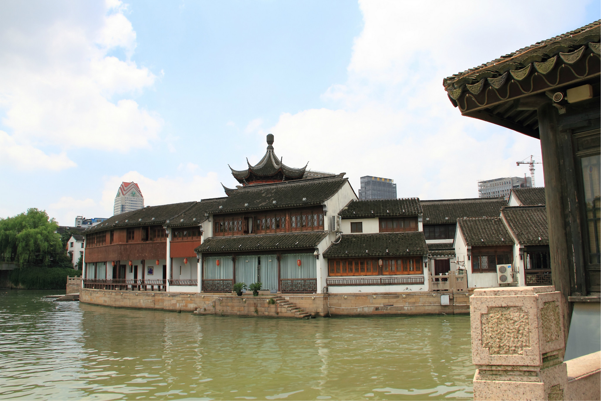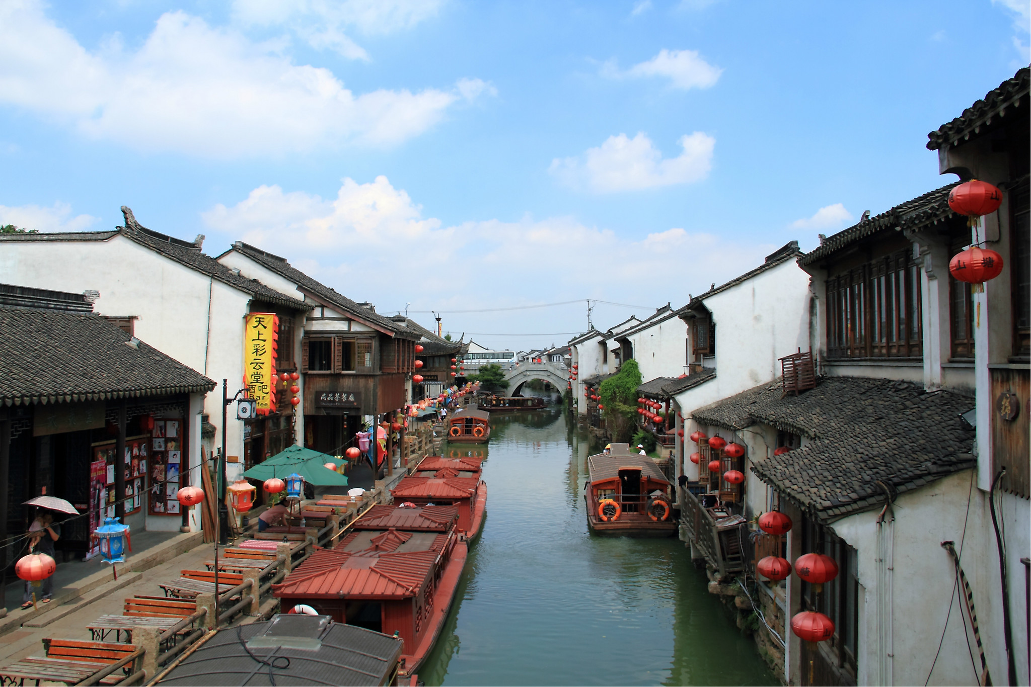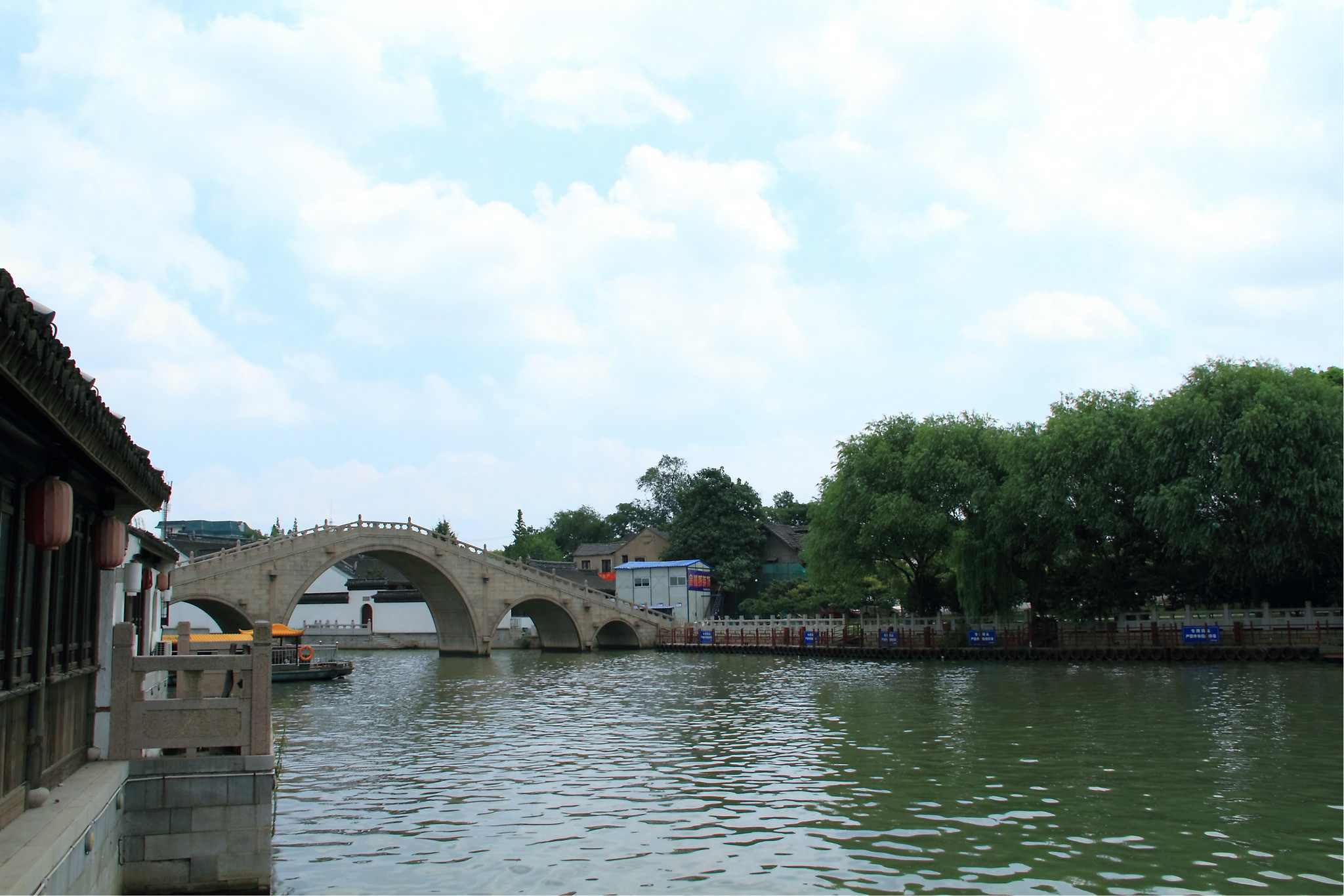 由于好基友说苏州 著名的景点如苏州 乐园,虎丘,寒山寺,园林等都太出名了游客也太多了,因此决定带我看看另一个不一样的苏州 。于是这次就体验了一下小桥流水人家的苏州 情怀。