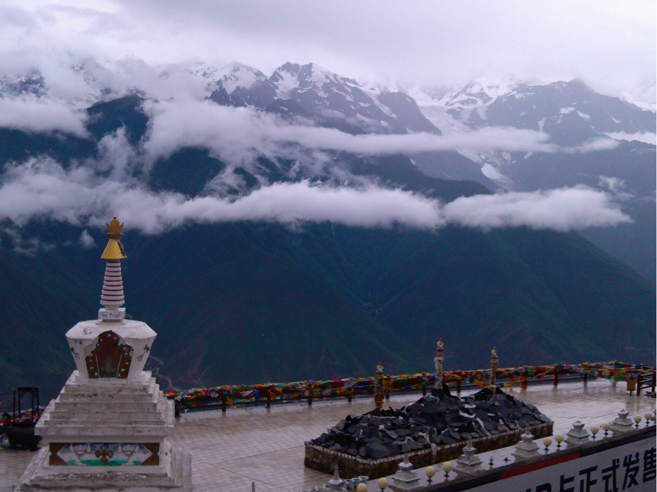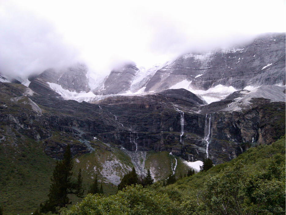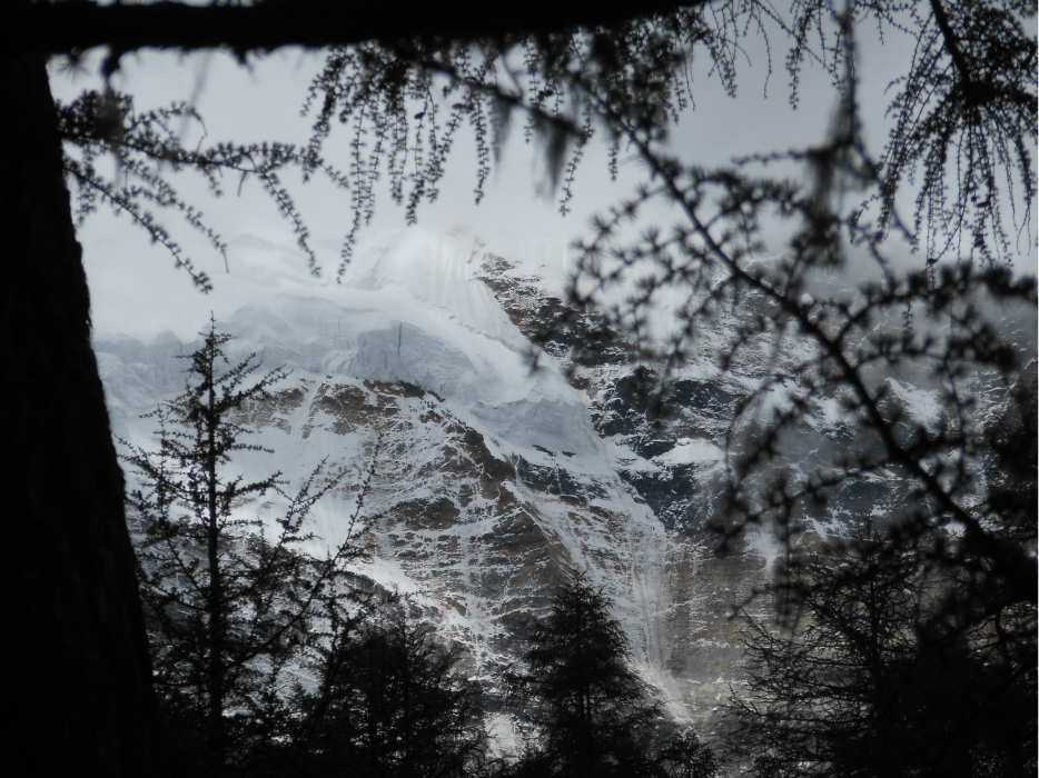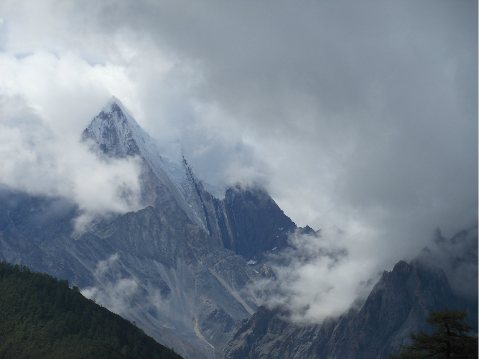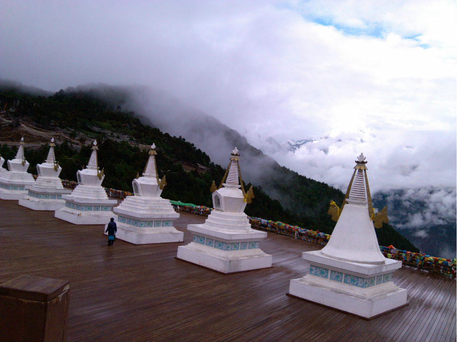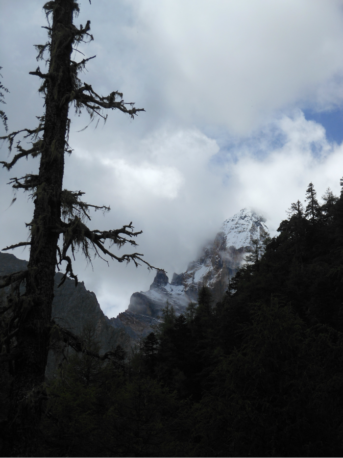 到亚丁 的时候还下雨呢,雨季基本都是乌云密布的,很难看到顶峰。