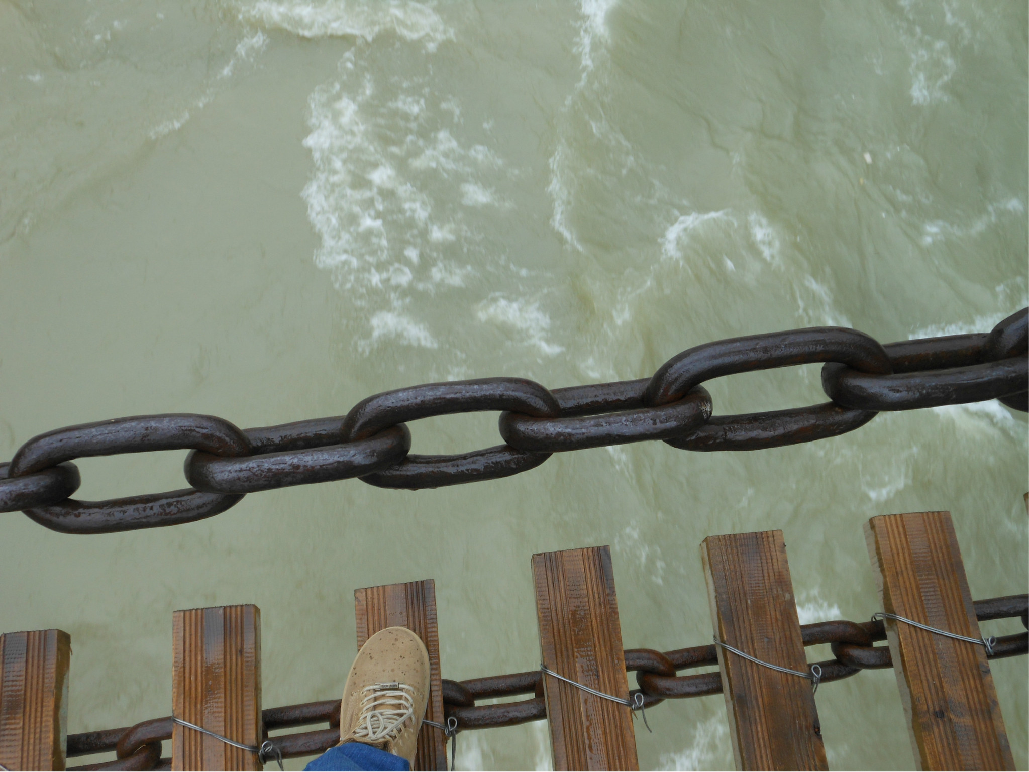 下午四点左右我们到了泸定 ,比我想象的大多了,这个小县城五脏俱全,藏族大哥名叫泽仁邓珠,他大哥是这里的公安局局长,已经结了婚在这里安家,大哥让我住政府安排的酒店,他去他朋友家住。便把房卡给了我,之前有一姐姐搭车去新疆 ,路上也碰到过好心人给抱住的,所以我也没想多就打算住下了,放下行李,大哥带我去看了著名的泸定 桥。可能他是政府官员吧,跟着进去不用收门票。
