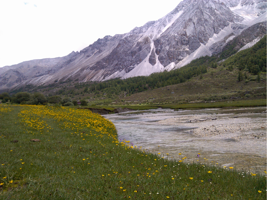 这是一段难忘的爬山涉水,走的是“马”路,只要看到有马粪说明你没走错,曾经有人走错过,竟走到了香格里拉 !!我只能说牛了,所以一定要认清方位。深入里面就像进去了一片远古森林,一片世外桃源 。林间溪流潺潺不息,飞泉瀑布于雪山之间,苍天古树,悬崖陡壁,明镜般的湖泊,满山五彩斑斓的野花。抬头便是云雾缭绕的雪山是历经沧桑的老树,低头便是草甸是碎石是野花是灌木是青石是倾泻而下的雪水。
