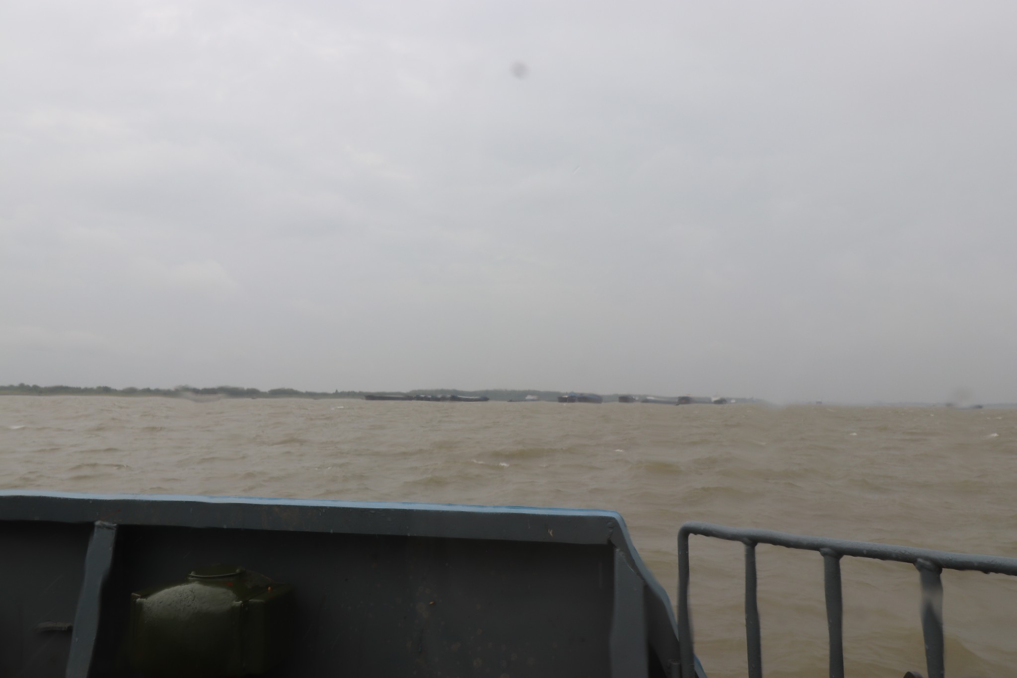 马鞍山到和县的码头是在市区北郊,而长江大桥在市区南部。轮渡一辆小轿车单程是25元。车上乘客不用再出钱。下层是停车位,有很多大货车也是轮渡过江,上层的客舱则空荡荡的,客舱内垃圾遍地。