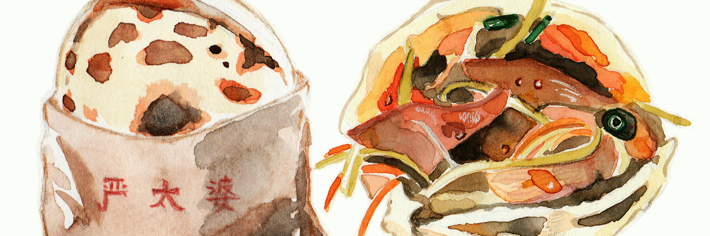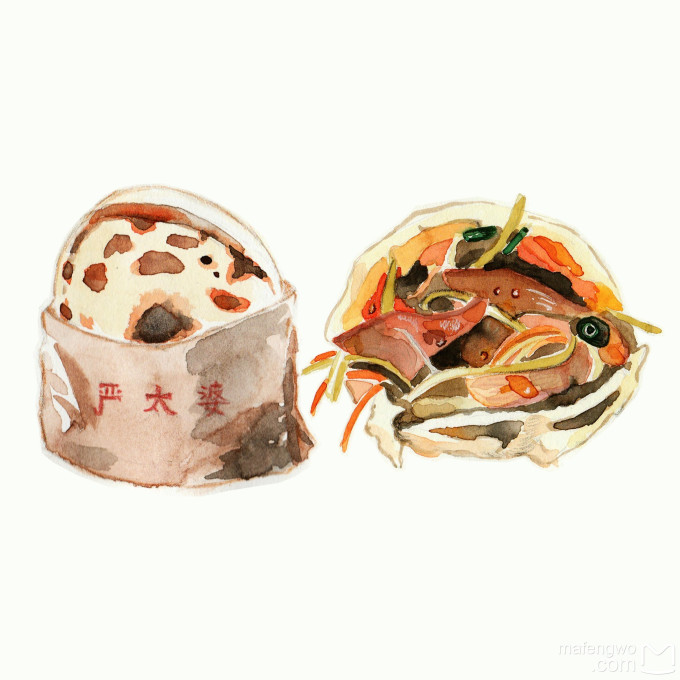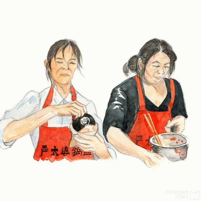 住在文殊院附近,从酒店一出来就看见街边排了个大长队,不知道抢购什么呢,闻着味儿过去一看,就默默加入了队伍。超级小的店面里贴着电视台、报纸对严太婆锅魁的各种报导,在附近住了几天,发现每天都是没开门就开始有人排队了,还有不少是本地人,只要营业时间内都有队伍在。店里四五个人流水作业,揉面、烤锅魁、拌馅料、填装馅料包装,一条龙。