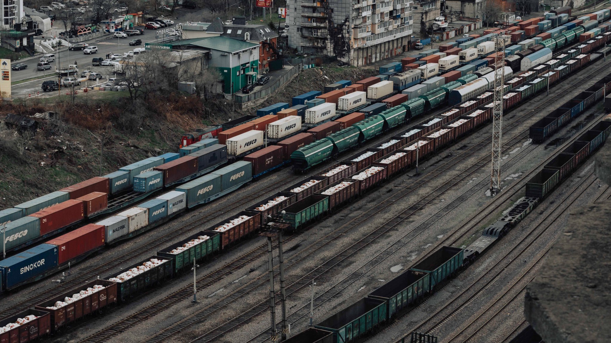 符拉迪沃斯托克像是被雨神诅咒过,一年四季大多数时候都在雨中度过,车窗外哗啦哗啦的雨点不断敲击着玻璃,好像随时都要吞没它们,并且这里有个不成文的规定,汽车是可以不用年检的,所以,Iron Crotch乘坐的廉价陆地铁皮车只是碰巧遇上了这样的好运,在暴雨中抛锚了。