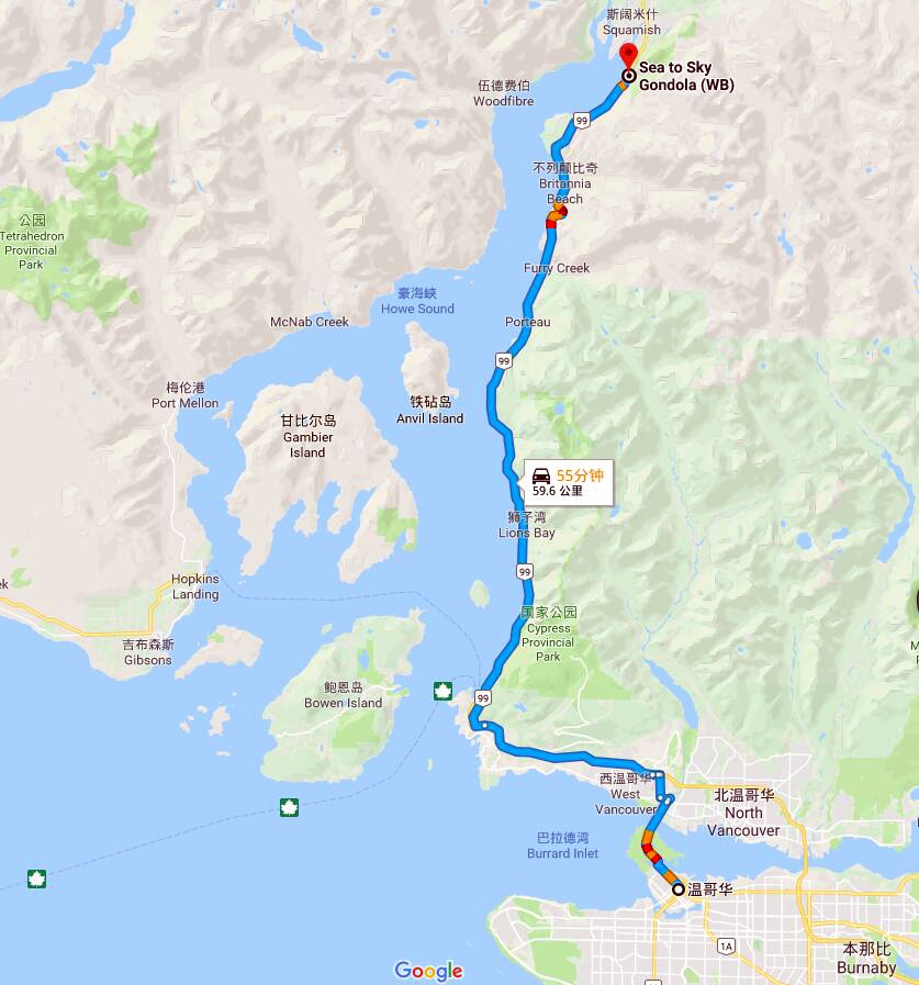 Sea to Sky Gondola (海天缆车)位于温哥华约一小时车程的