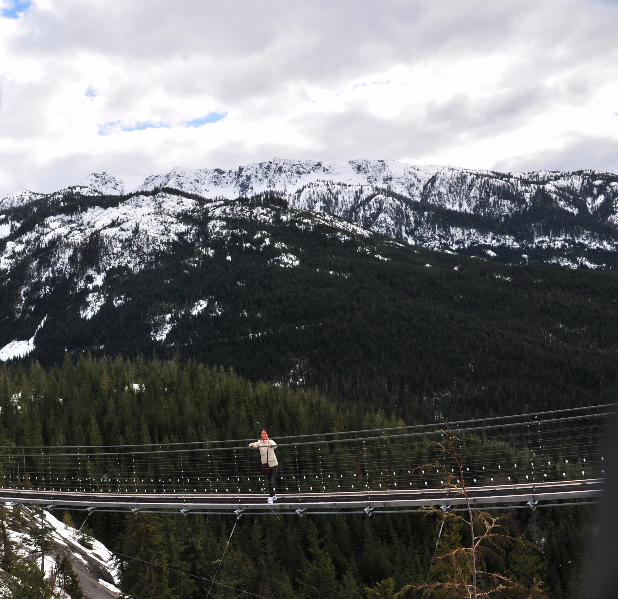 Sky Pilot Suspension Bridge。翻译成中文全名是:空中引航悬索桥,这座吊桥约100公尺。在桥上面对着360度全景风景图,悬索桥吊桥的桥面稍窄,最多两个人并行,走的时候晃晃悠悠
